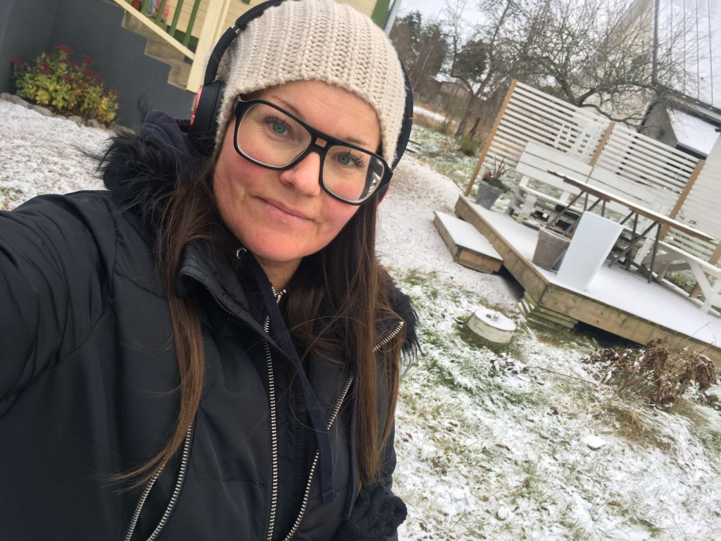 Efter promenaden. Ser ni? Lite mer glöd i ögonen och röda kinder. En timma och 21 minuter blev det! Nästan 8 km då jag gick i en takt som ryggen klarar av. Ljuvligt!