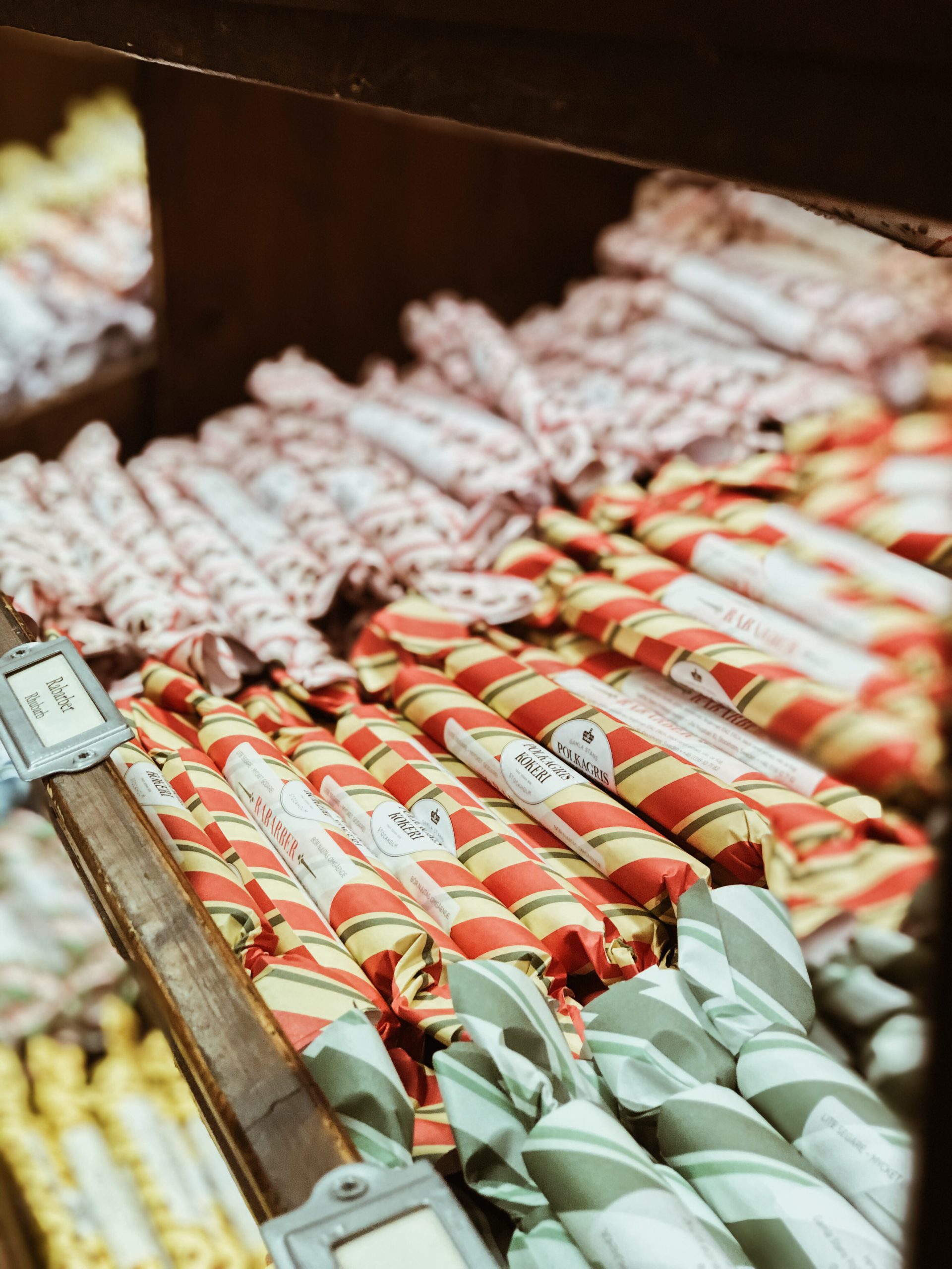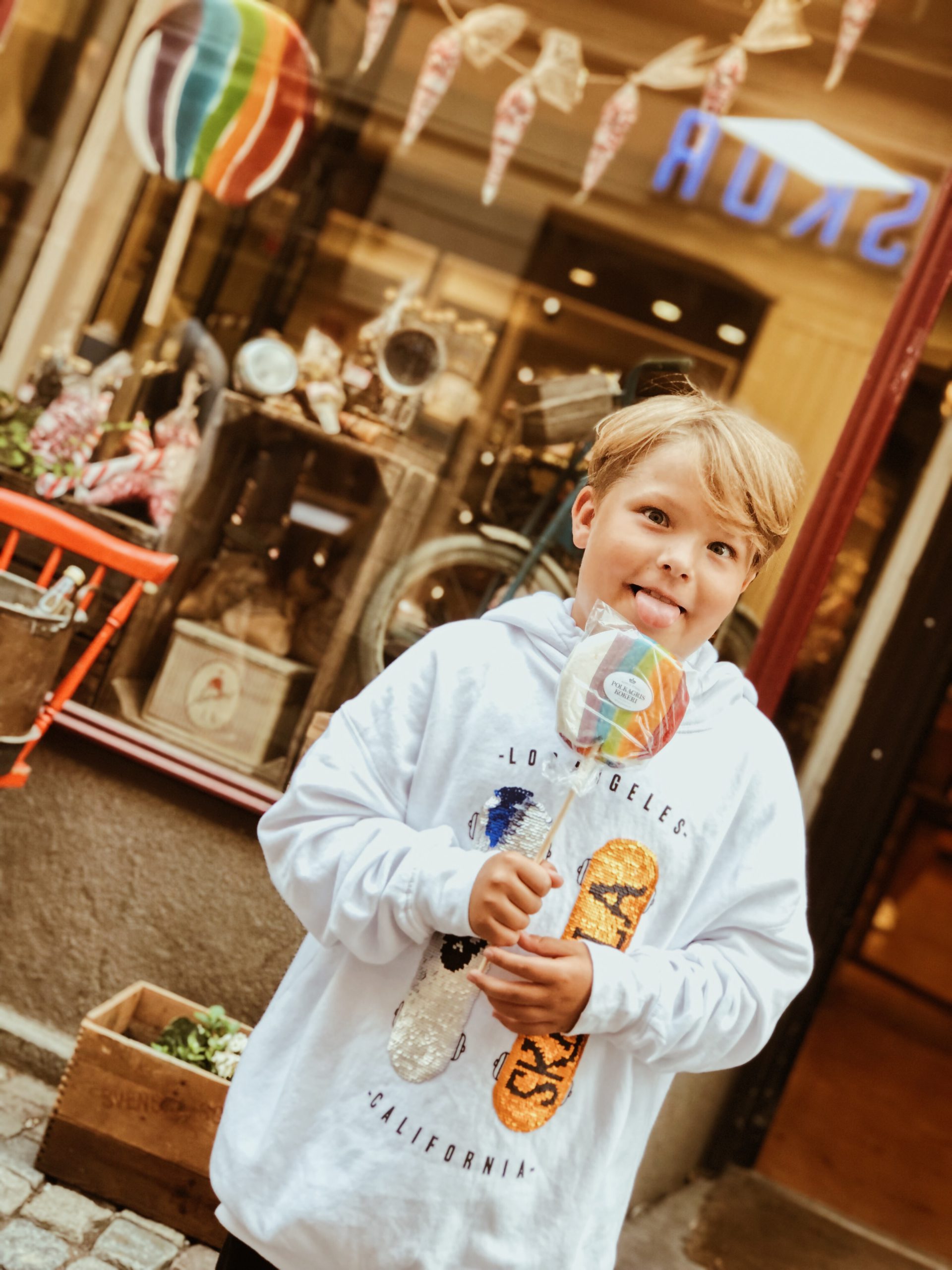 På väg tillbaka gick vi förbi Polka bageriet. Där kan man titta när de tillverkar godiset därinne. Till Milos stora glädje köpte vi även en klubba som nästan var lika stor som hans huvud.