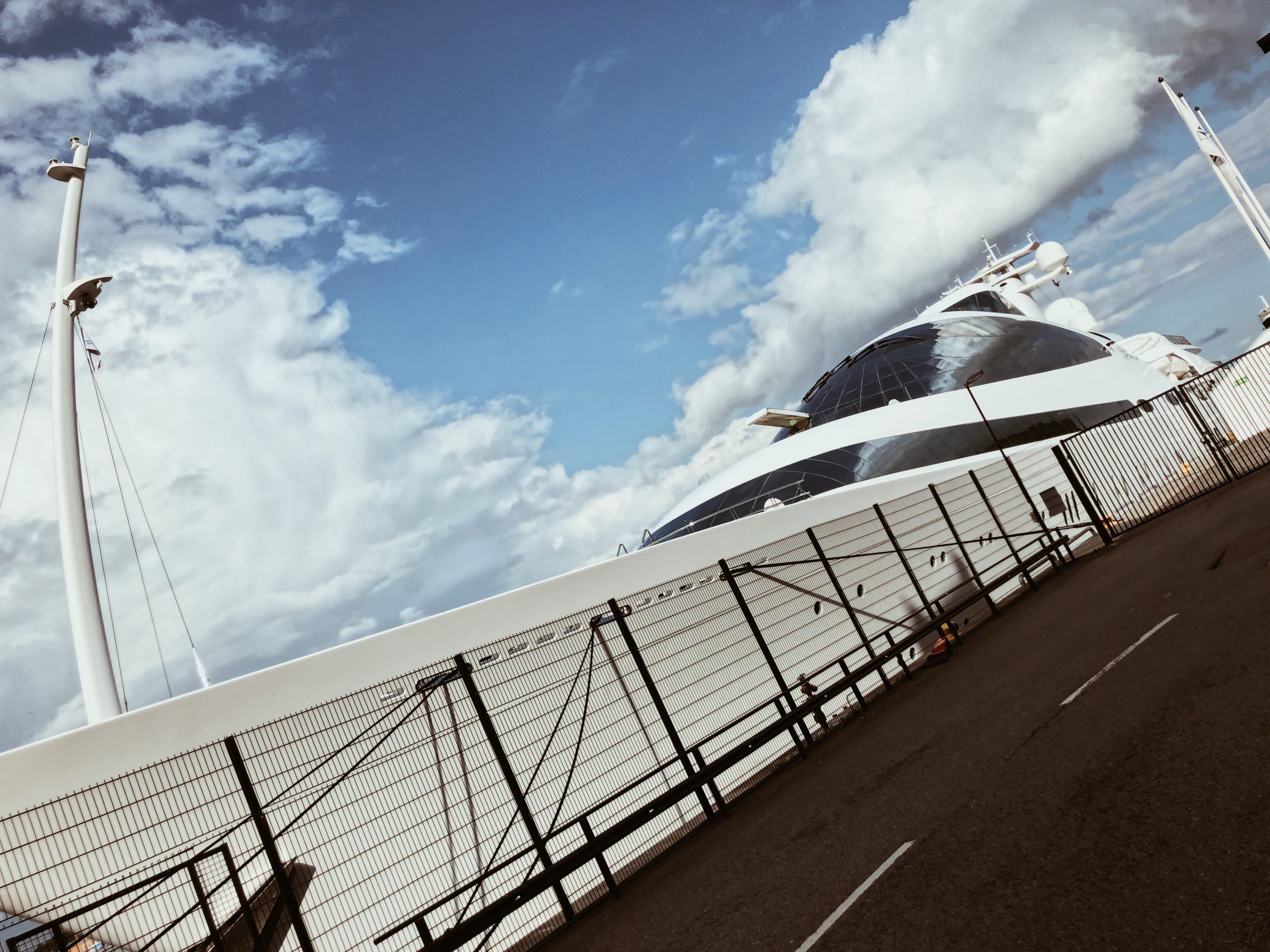 Den var heeeelt jäkla enorm! 141 meter lång, 30 hytter med plats för över 60 passagerare. 56 besättningsmän och så är den värd 1,7 miljarder kr. Det fanns liksom pooler på baksidan”. När vi gick förbi så kom det ett gäng kvinnor som skjutsades dit i en form av diplomatbilar. De hade varit och shoppat, vi såg påsarna. Detta är en av de 10 största yachterna som finns i världen och den lyckades vi se.