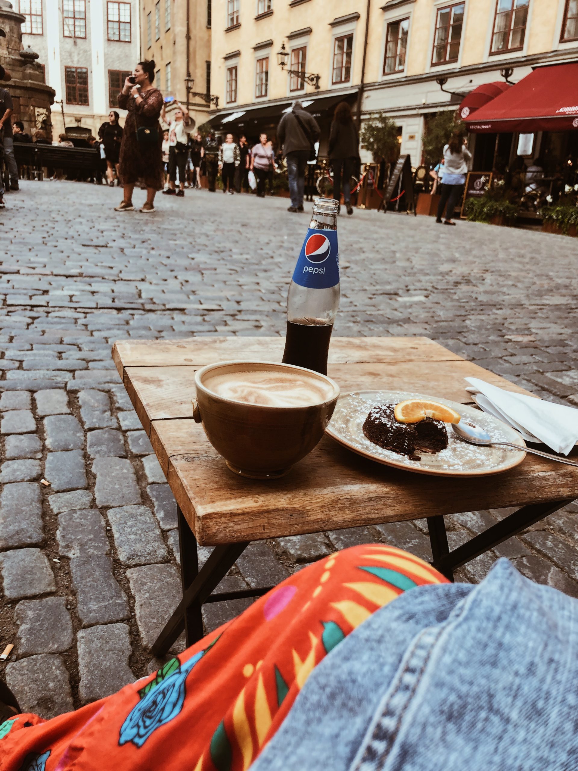 Vi satte oss och tog en fika på Kaffekoppen. Vi satte oss på korgstolarna och kikade ut mot Järntorget och alla människorna där. Det var verkligen tjockt av människor, mestadels turister. Så kul att titta på folk ju.