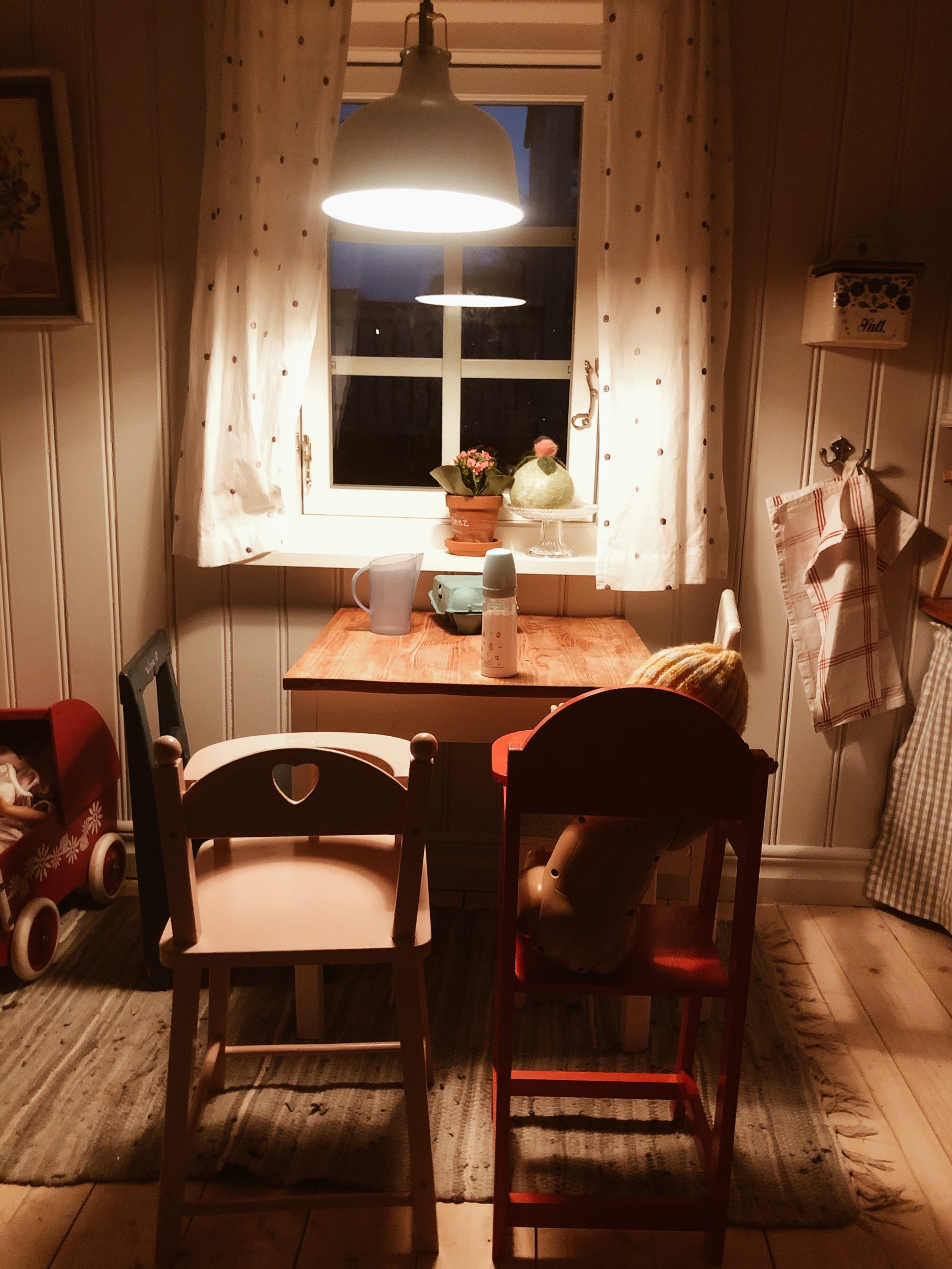 Vi blev bjudna på både kaffe och glass där inne i lilla Lekstugan. ❤️ Men har ni sett? Hur fint? Lilla Lekstugan är en kopia på det stora huset. Så charmigt så jag svimmar. Allt är byggt i lösvirke så det är helt unikt också.