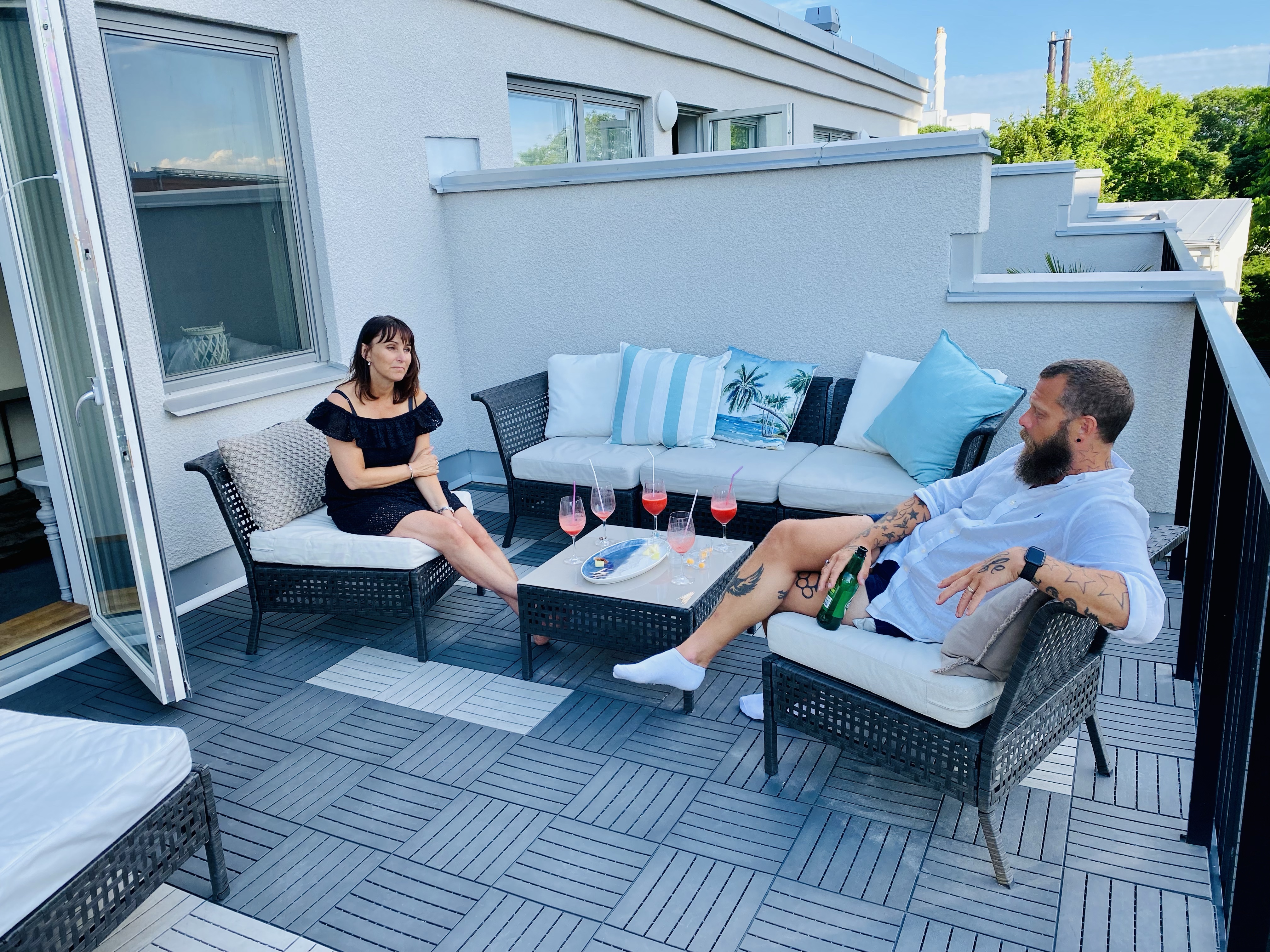 Efter kalaset for vi raka spåret hem till exet Magnus och Maria. Dom hade fixat så mysigt med fördrink på takterrassen. Deras takterass är sååå mysig. Strawberrie daquiri bjöds vi på, riktigt smarrigt och väldigt somrigt och härligt.