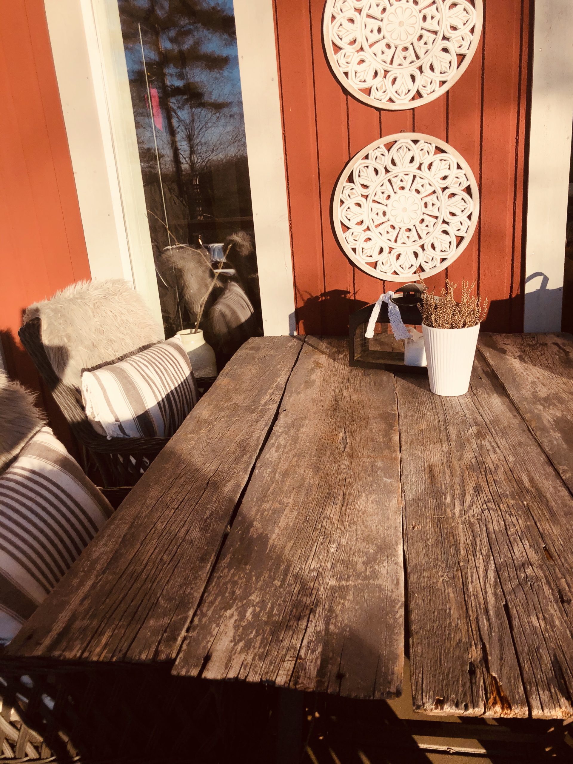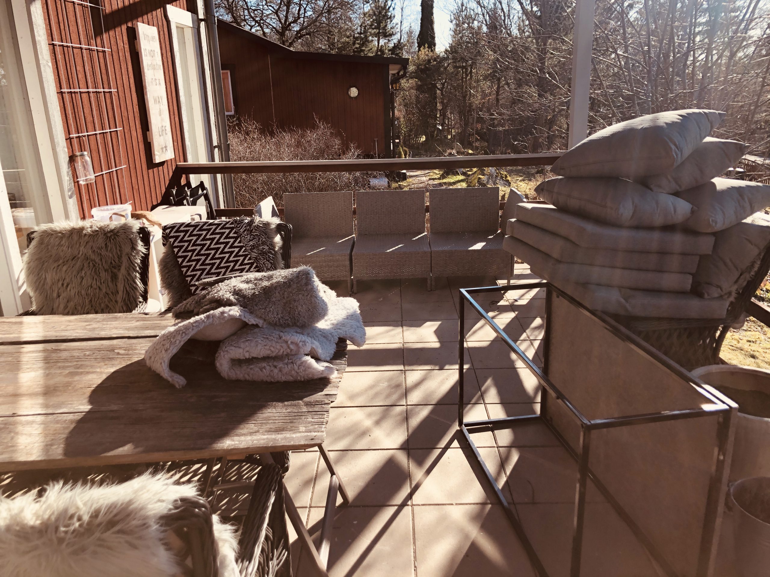 Vi ställde i ordning någorlunda så att när våren kommer på allvar är det bara lite blommor, krukor och mys som ska plockas fram. Vårt gamla vardagsrumsbord (som står på altanen) skulle få bli utebord men det blev inte bra. Får se om vi får till det på baksidan, annars får vi göra oss av med bordet.