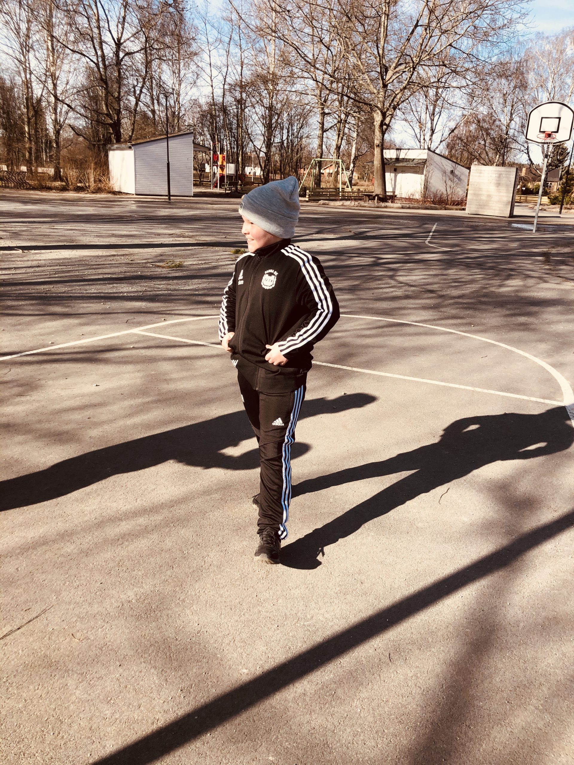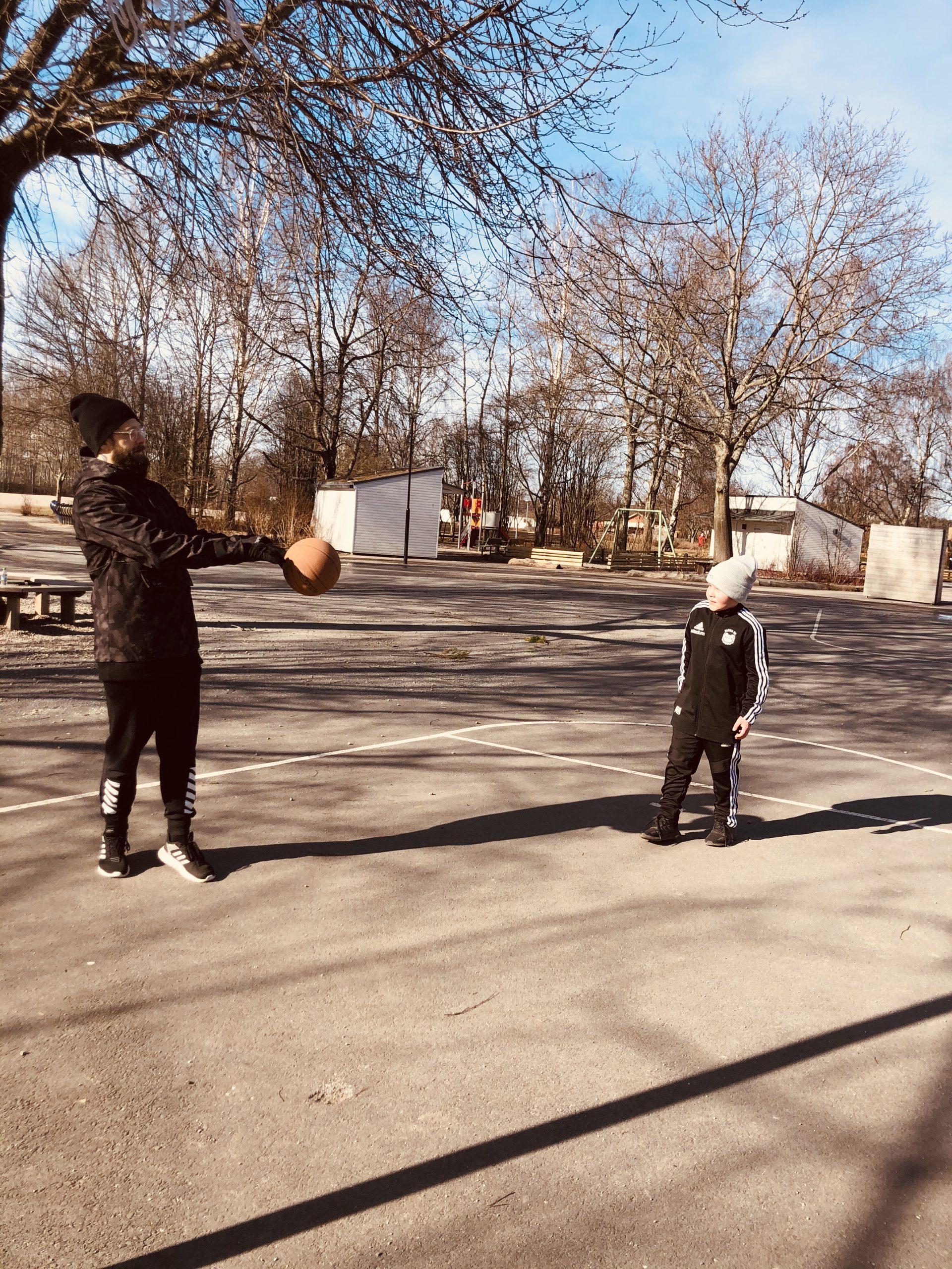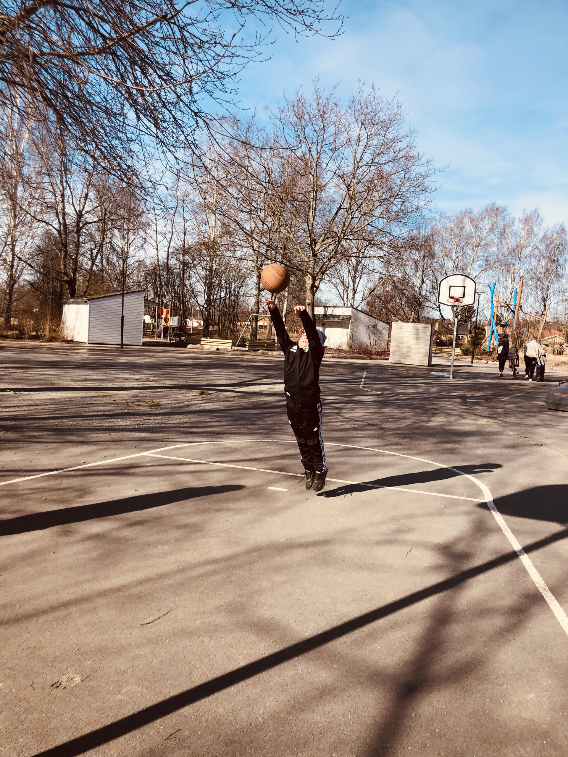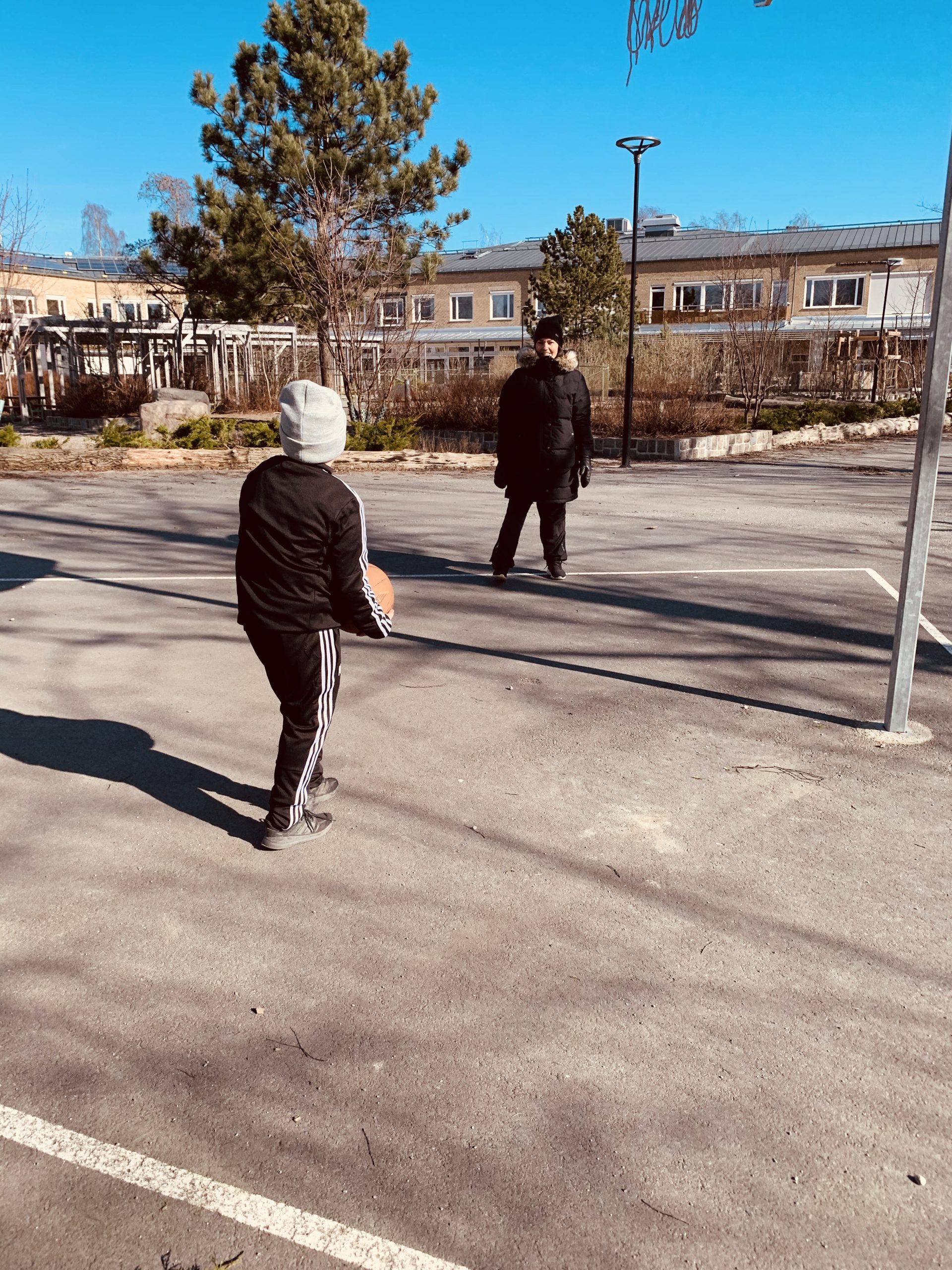 Efter fix här hemma så drog vi faktiskt ut till en skola här i småstaden och spelade basket med Milo.