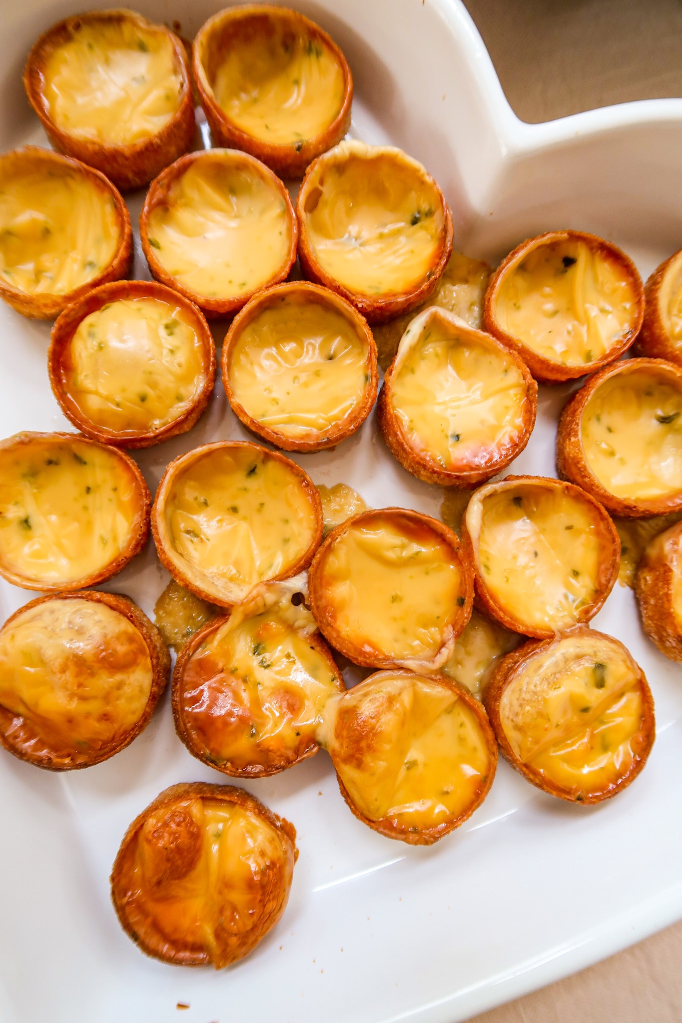I med osten till hälften i krustaderna. In i ugnen på 225 grader i ca 15 min eller tills de får färg.