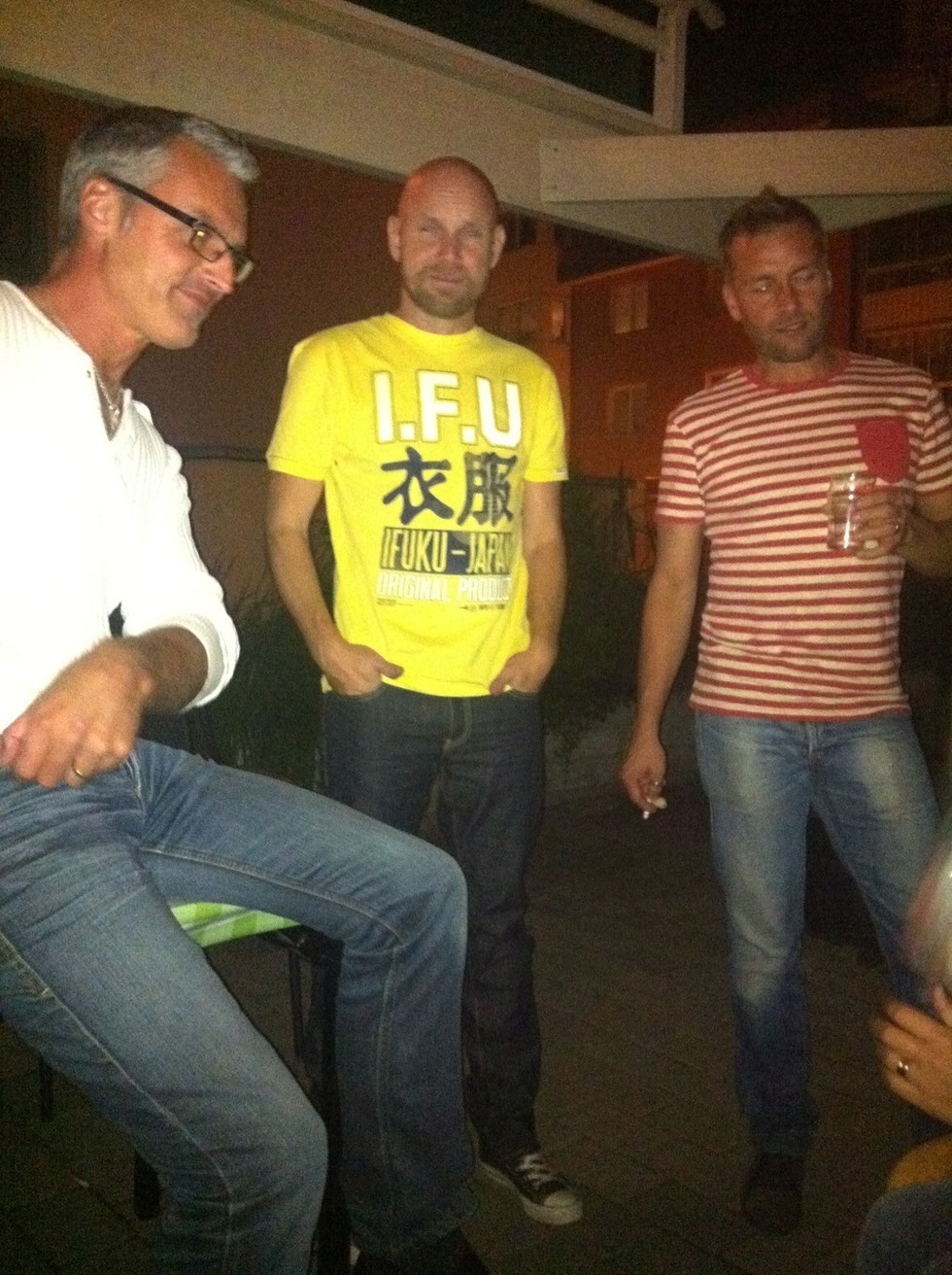 Hårda killar på plats. Johan, Tony och Bjarne (han heter Andreas men kallas för Beijne men Bjarne av mig! Observera den väldigt manliga plånboken i Tonys hand. 🙂