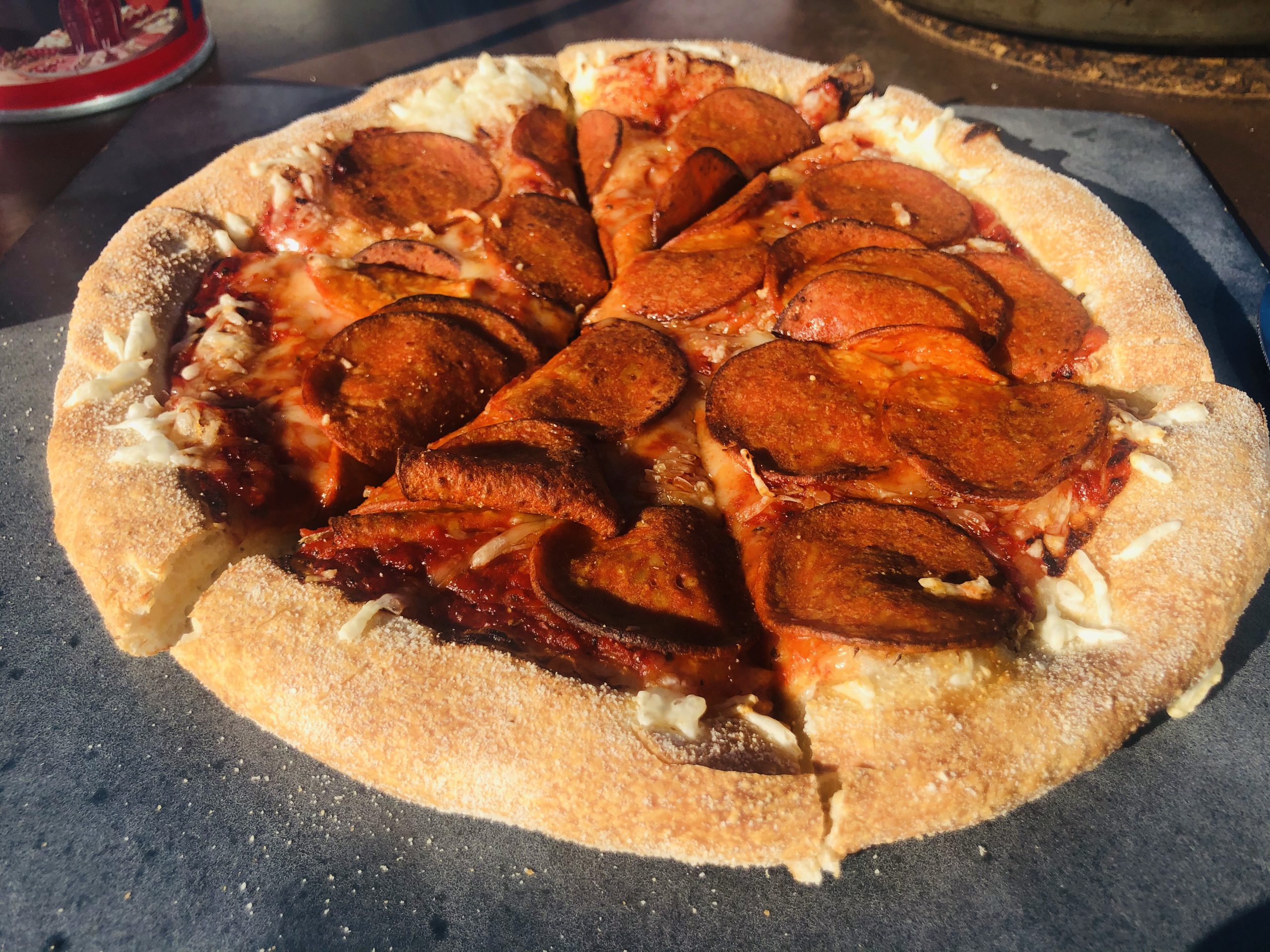 Igår spelade Milo match i Uppsala. Efter matchen hade vi planerat in ett besök på Pizza Hut. Jag testade en vegansk botten med vegansk ”pepperonikorv” och vegansk ost. Så god! Jag rullade ut från uteserveringen. 😂
