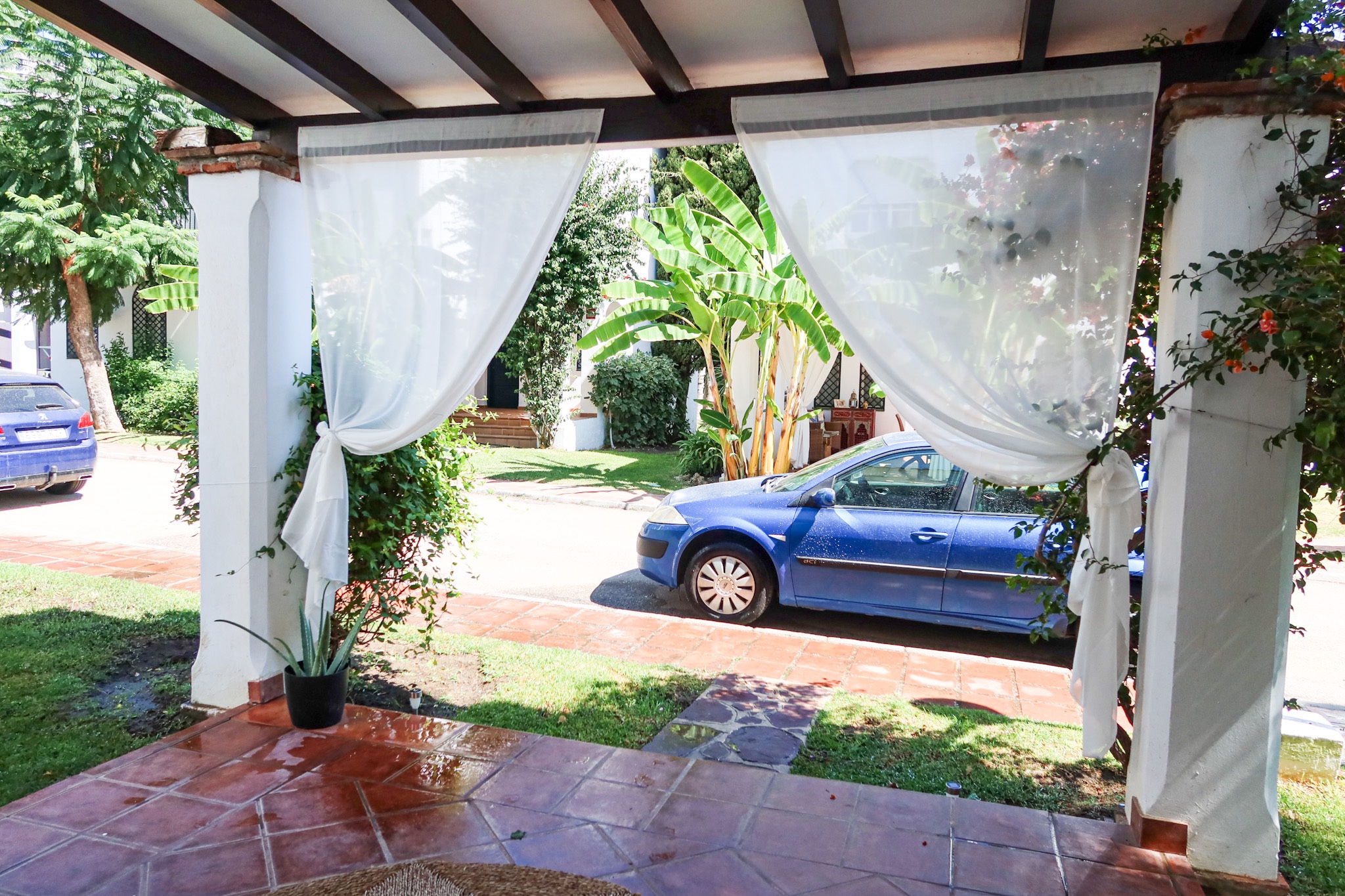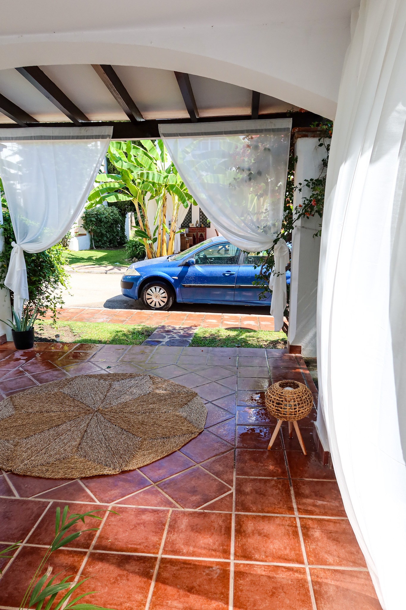 Här har ni vår entré, när vi skrev på kontrakt på den här lägenheten så var det ju en jättemysig entré med lite korgmöbler och sånt. Trodde vi, det visade sig ju inte vara den lägenheten som fanns på bilderna. Detta är en likadan, absolut, men den är spegelvänd och den hade helt andra möbler. Dessutom fanns här ingenting t ex vid entren. Det är massa annat som också saknats som vi nu fått en del av. De har alltså köpt till sånt som vi saknade och faktiskt skrev på för. Första dagarna var ju kaos! Jag ville inte ens flytta in till en början, Tony var fly förbannad. Men, förmedlingen har varit väldigt tillmötesgående med oss. De kom t.o.m. hem till oss för att prata igenom saken. Där lovade de att åtgärda allt sånt som saknades. Sånt som dynor till loungegruppen på takterrassen, köksutrustning, utemöbler på baksidan osv. Dock så fick jag aldrig mina korgmöbler till framsidan, och eftersom vi hyr så kan jag ju kanske inte köpa störa möbler som vi sen inte kan frakta hem. Löser jag det? Tror det ska gå en lastbil som man kan köpa plats i härifrån till Sverige, så kommer jag köpa möbler också. Men så länge så får dessa två plaststolar som hör till utemöblerna på baksidan duga.