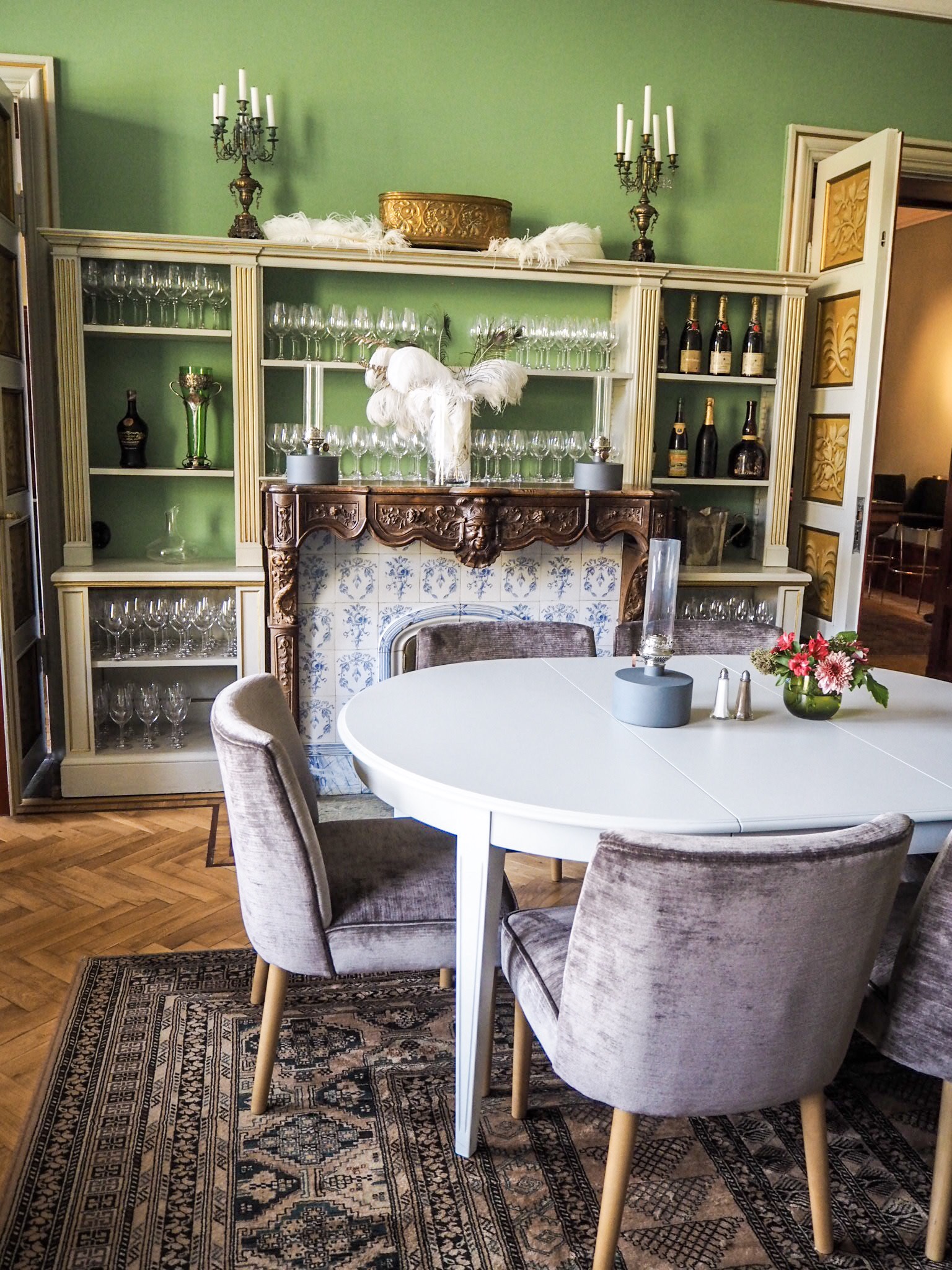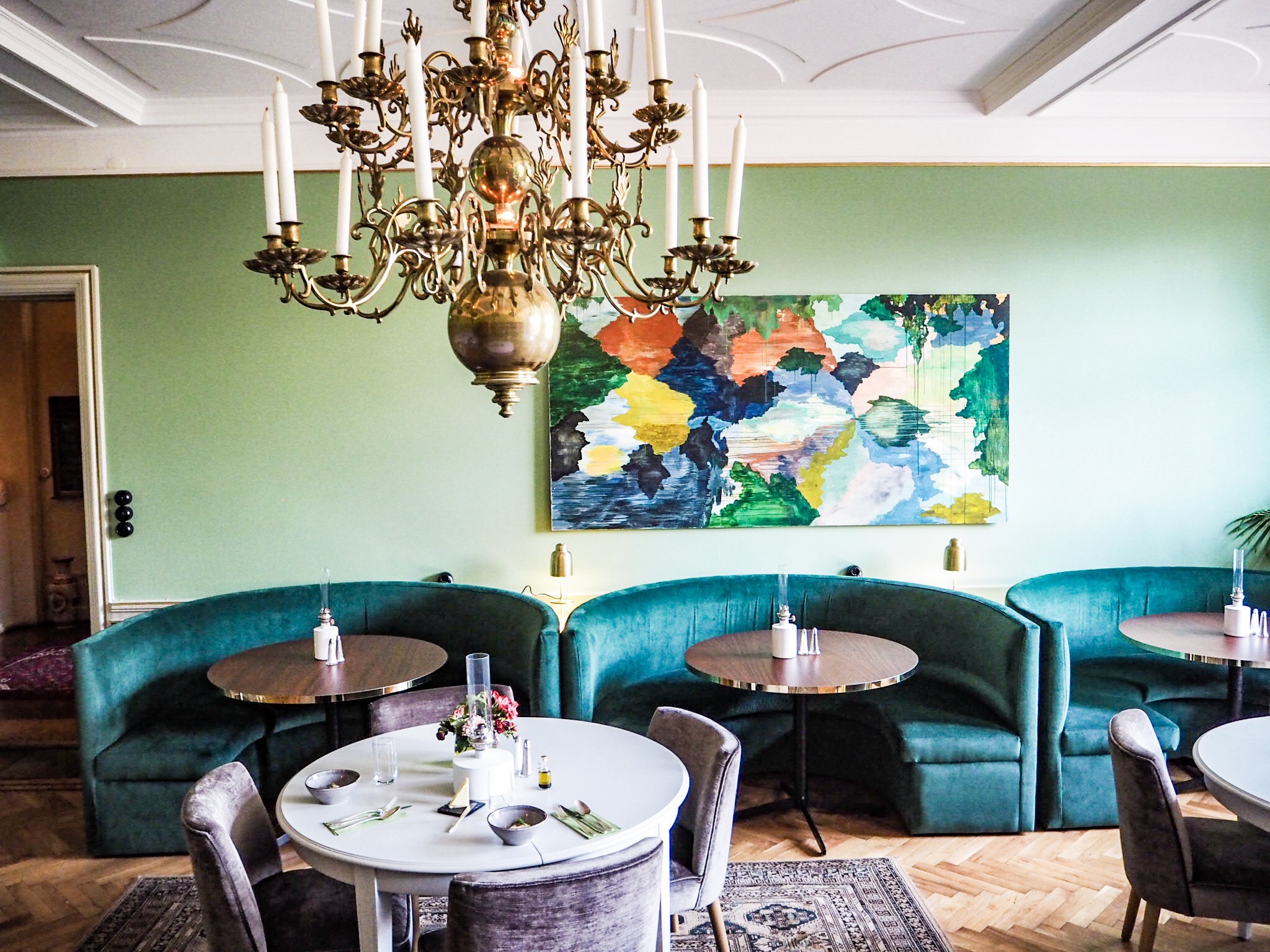 Ett utav matrummen! Här inne var det sååå fint! Älskar den lite udda färgsättningen och hur de fått ihop gammalt med nytt!