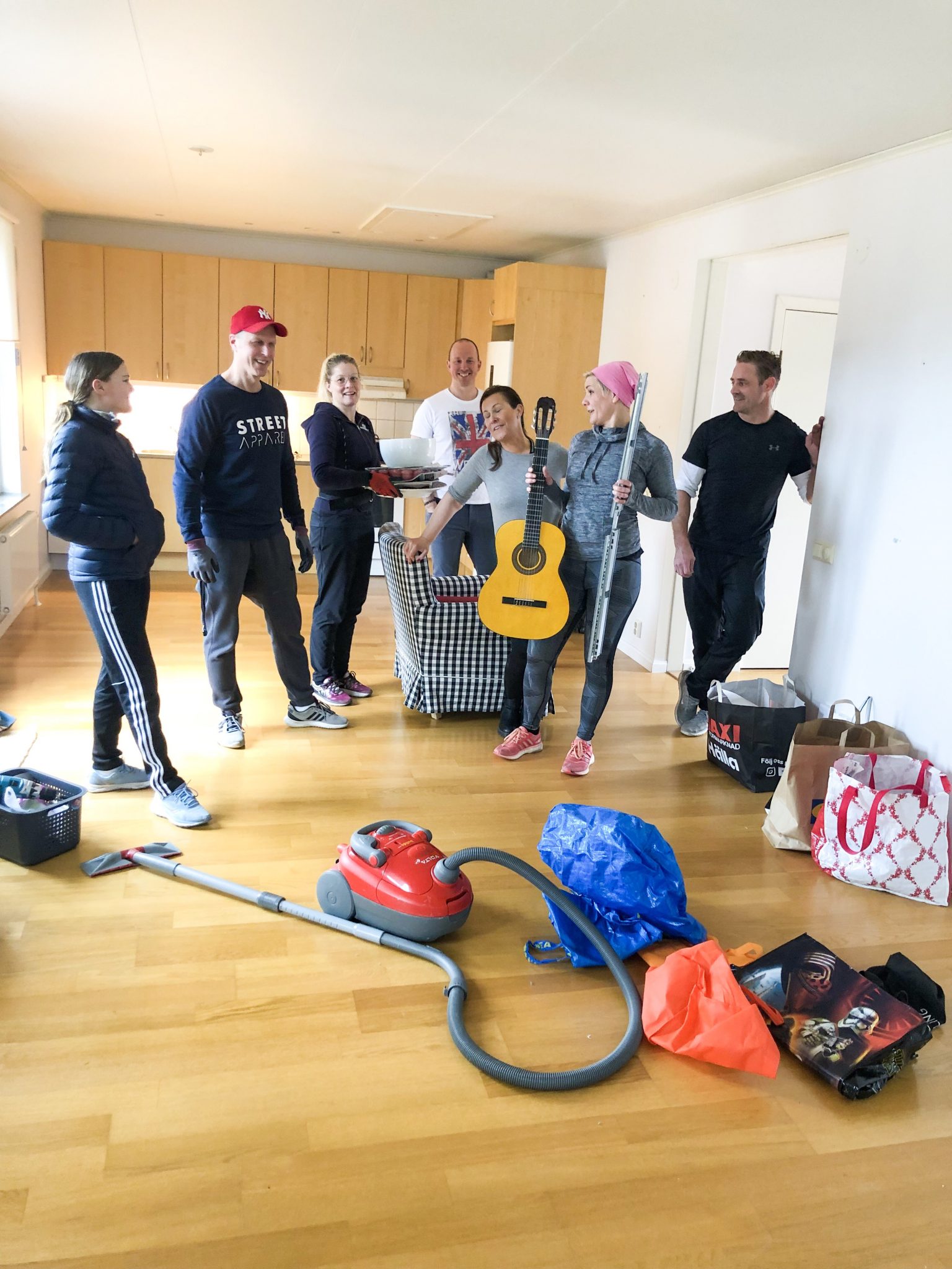 Här har ni flyttgänget! Olivia, Börje, Susanne, Gustav, Maria, Lisette och Johan. Det går fasligt snabbt när man är många. Kommer bli så fint när det blir klart uppe i Marias nya lägenhet.