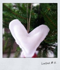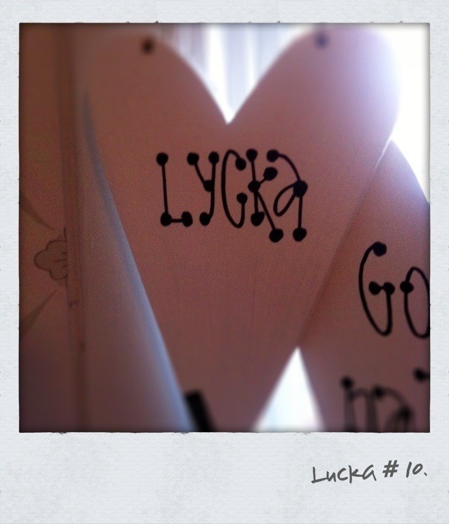 Men idag har vi 2 härliga produkter i lucka # 11. Ett hjärta i MDF med texten LYCKA. Hjärtat är ca 25 cm högt, 15 cm brett. Sedan har vi 5 småhjärtan i lintyg att hänga i granen.