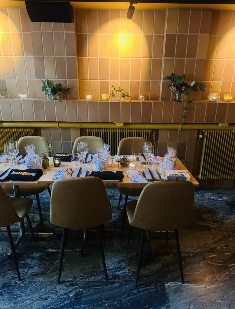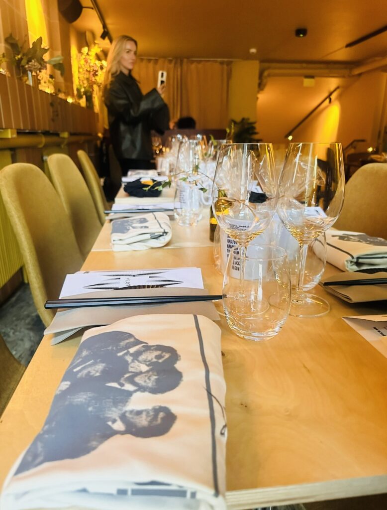 Det var så fint uppdukat och vi alla fick en signerad Niklas Strömstedt T-shirt till bordet. Den här restaurangen är så liten och mysig, och maten… ja det kan vi prata om lite längre ned för herrminjee i gatan så gott det var!
