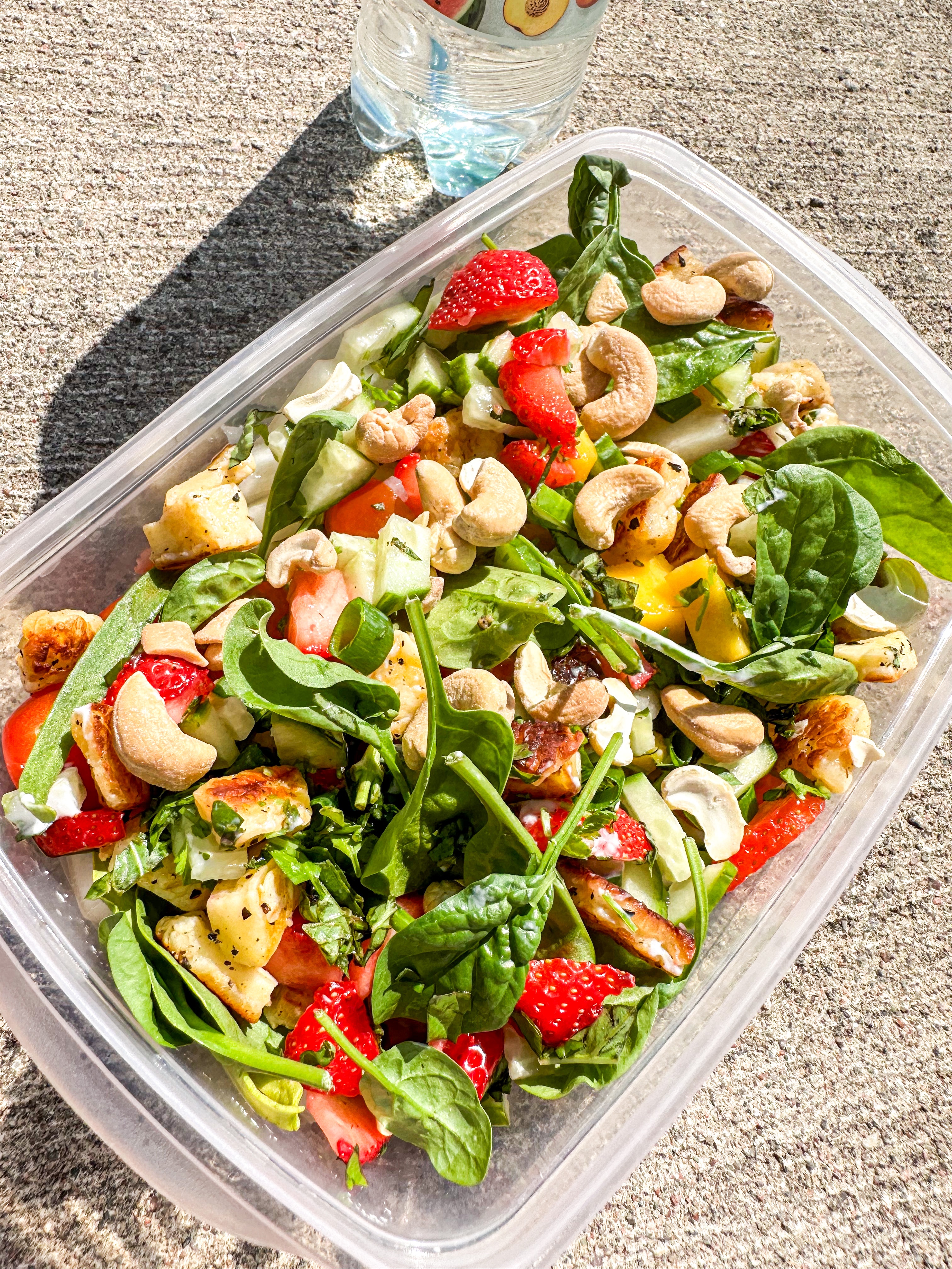 ….kan man väl aldrig få nog av såhär på sommaren. Jag älskar fräscha sallader. Idag åkte vi till en brygga och satte oss, hade med oss en kylbag med gott i. Bl a denna sallad som jag tänkte tipsa dig om nu.