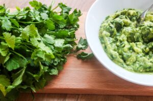 2) Finhacka alla färska örter. Ha i dom också. Pressa i hela limen, blanda runt.