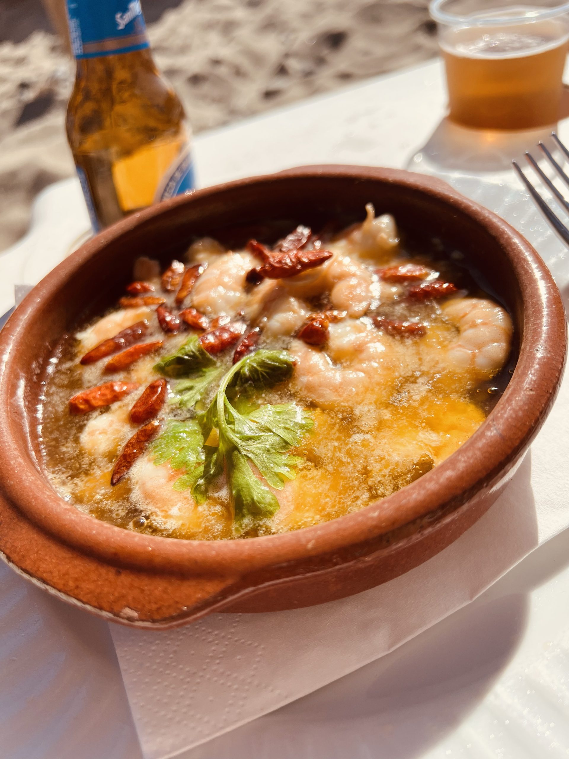 Vi har försökt ta oss till stranden så ofta vi kan. Allt för att njuta medan det fortfarande är som svensk sommar. Man känner att högsommaren här är förbi och att det börjar bli svalare. Inga 33 grader nu utan mer behagliga 25-26 grader. I helgen var vi på Mistral Beach och åt deras galet goda Gambas Pil pil. Det är den bästa vi hittills testat.