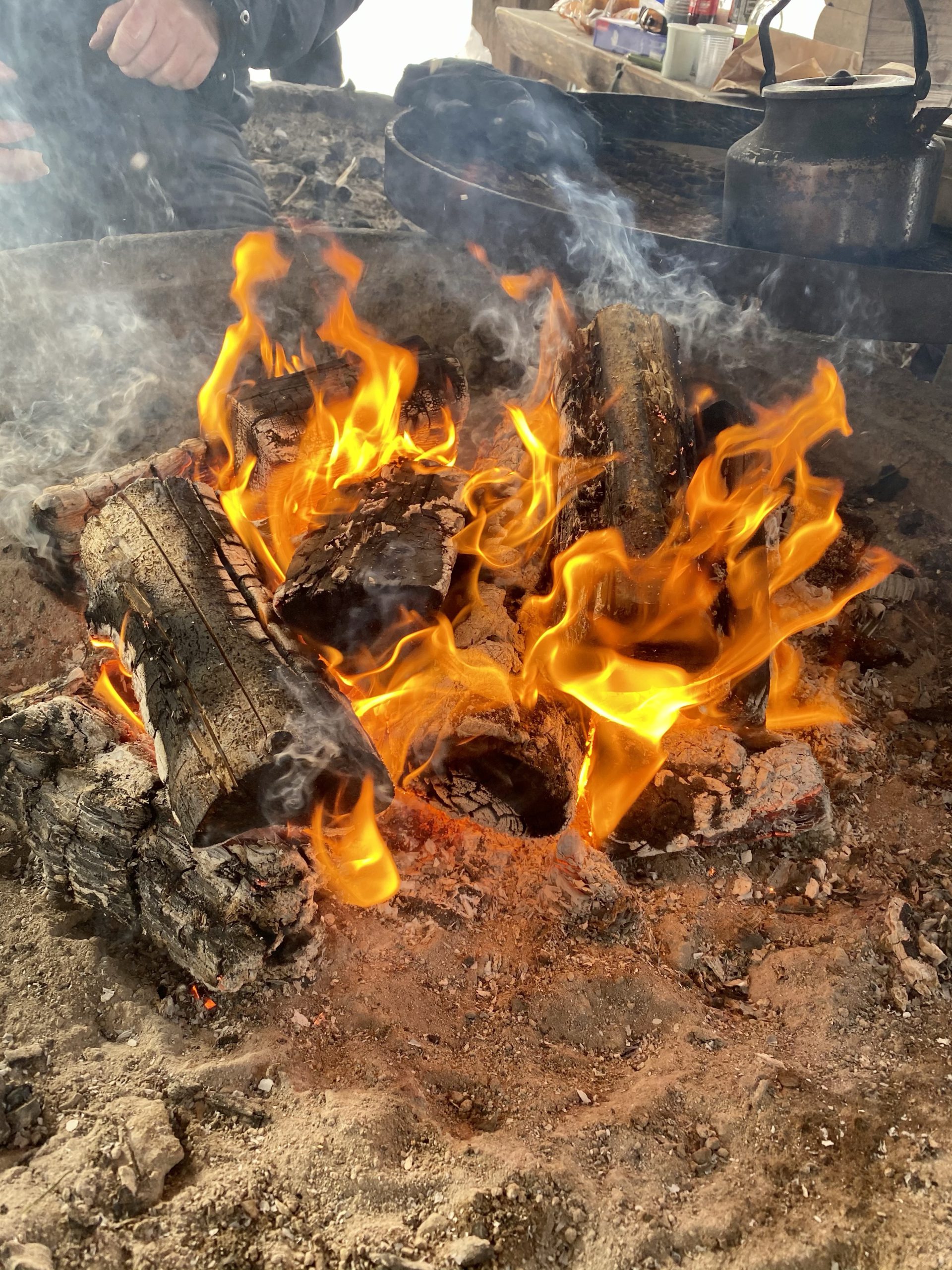Kaffet kokades på elden och så fick vi Hajkbanan till efterrätt. Det mumsades rulltårta för glatta livet också. Så gott allting!
