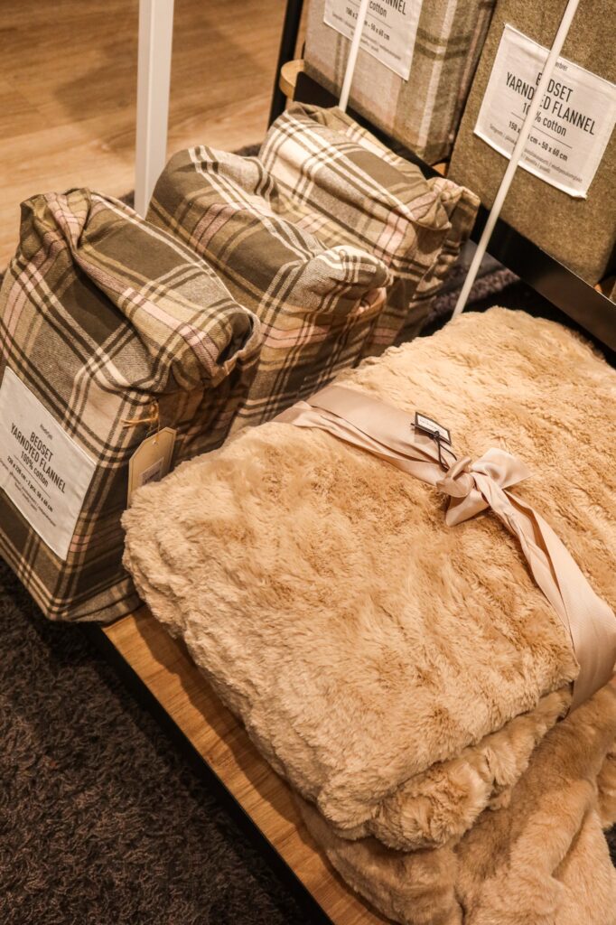 Flanellset i grönt och pläd i pälsimitation är väl hur mysigt som helst i Novent. Plädar är höjden av mys i soffan. Så gosigt att ligga på eller ha över sig, det är mysigt och väldigt vackra att ha ligga i soffan. Denna i beige var så fin!