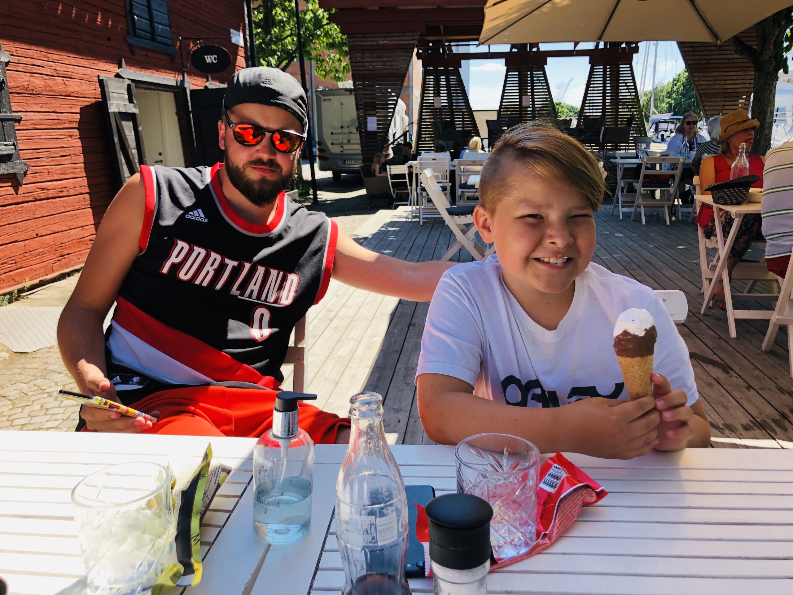 Vi tog en långlunch nere vid hamnen och satt och gassade. Blev efterrätt i form av glass för barnen. Kändes nästan som förr. Det är galet längesen man hade med sig alla 3 i släptåg. Gud som jag kan sakna den tiden ibland…. även om den perioden också var tuff på många sätt. 3 barn i åldrarna 3 (trotsålder), 13 (tonårstrots) och 15 (”tror att man är mycket äldre än vad man är” åldern), ja men det kunde helt klart vara en utmaning. När de äldsta sen blev så pass stora så de började festa och så en Milo som sov oroligt på nätterna, ja då var man inte heller så kaxig. 😨 Kändes som Milos 5 första år var sömnlöshet och så bara fortsatte det med att äldsta började ränna på nätterna, så när Milo började sova så tog äldsta över tätt följd av mellan. Ja ni hör ju! Det där med sömn blev överskattat i många år. 😂