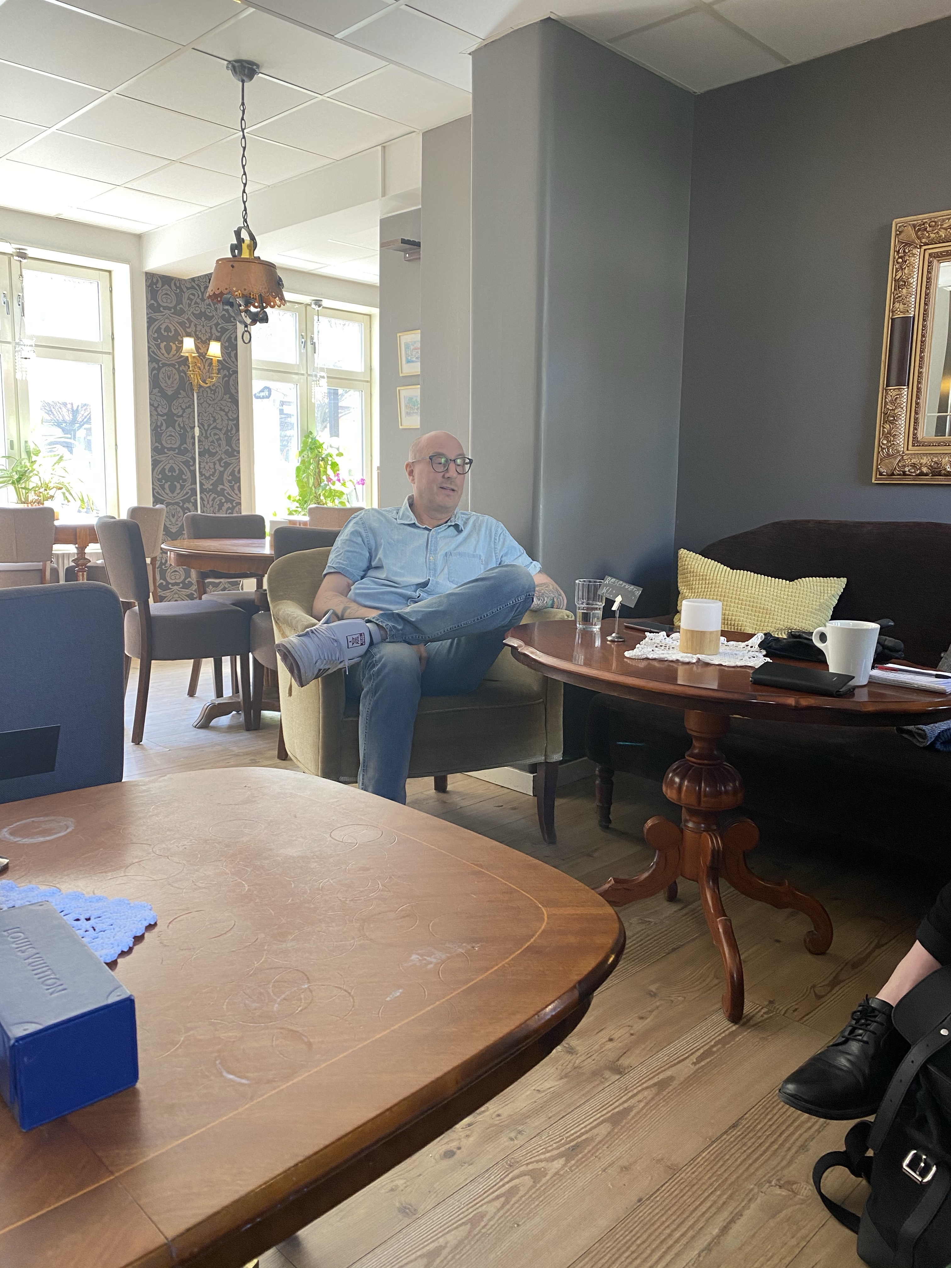 Erik behandlas just nu med cellgifter för att försöka stoppa det som går att stoppa. Han är optimistisk då han inte behövt tömma sin lunga på vatten på över 3 veckor. Varje grej är en seger. Detta är inte heller en liten grej, det är enormt. Att slippa tömma en lugna som tömts 2 ggr på flera liter vatten är en enorm seger. Något som blir bättre i en långt framskriden cancer är en enorm seger. Erik var och fick sina cellgifter i måndags och igår hade vi den här förmiddagen med tidningarna och SVT. Jag var lite orolig över hur han skulle orka? Han blir såklart påverkad av det. Illamående, enorm trötthet osv. Men där stod han och lös som bara han kan när vi möttes upp. Det syns inte en strimma att han är sjuk, inte en strimma. Samma glöd i ögonen och samma snälla varma människa.