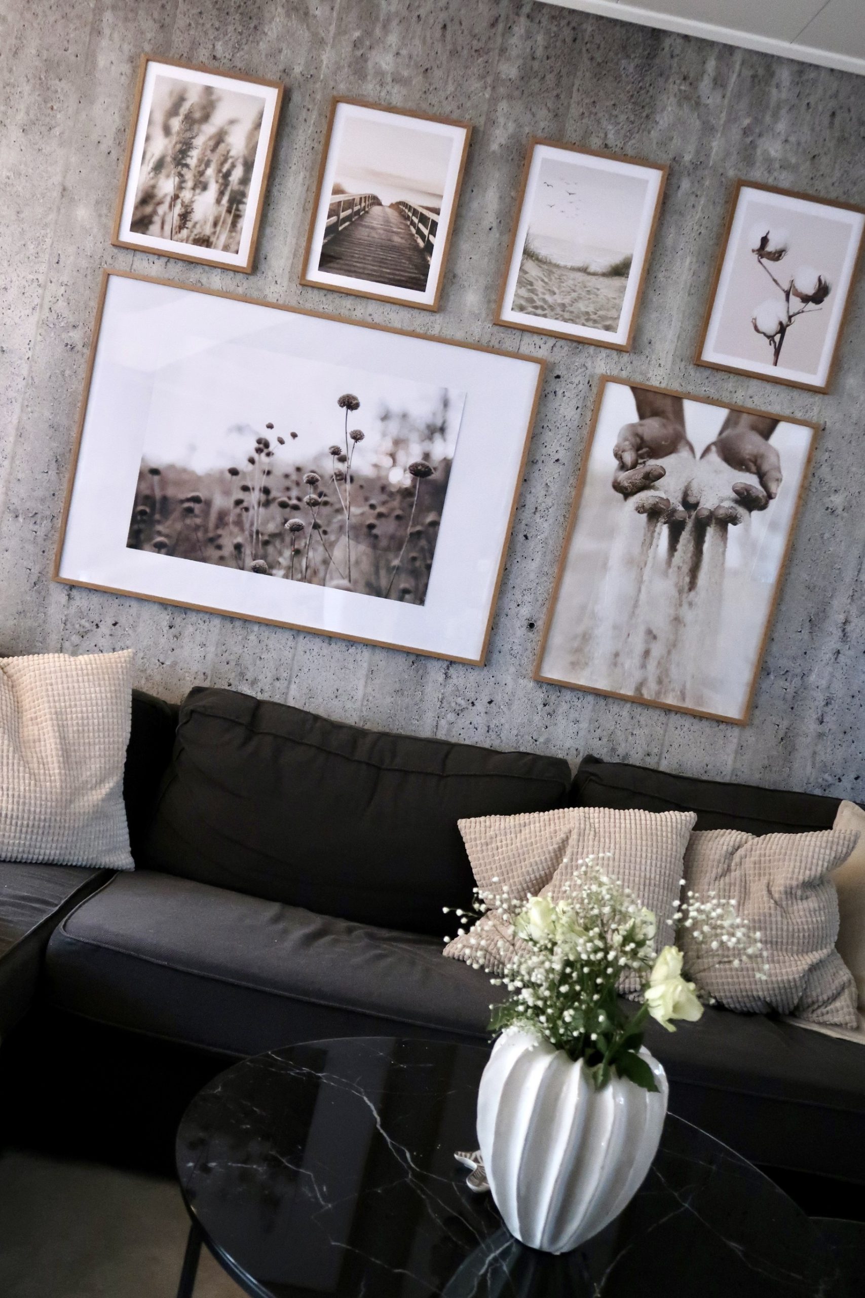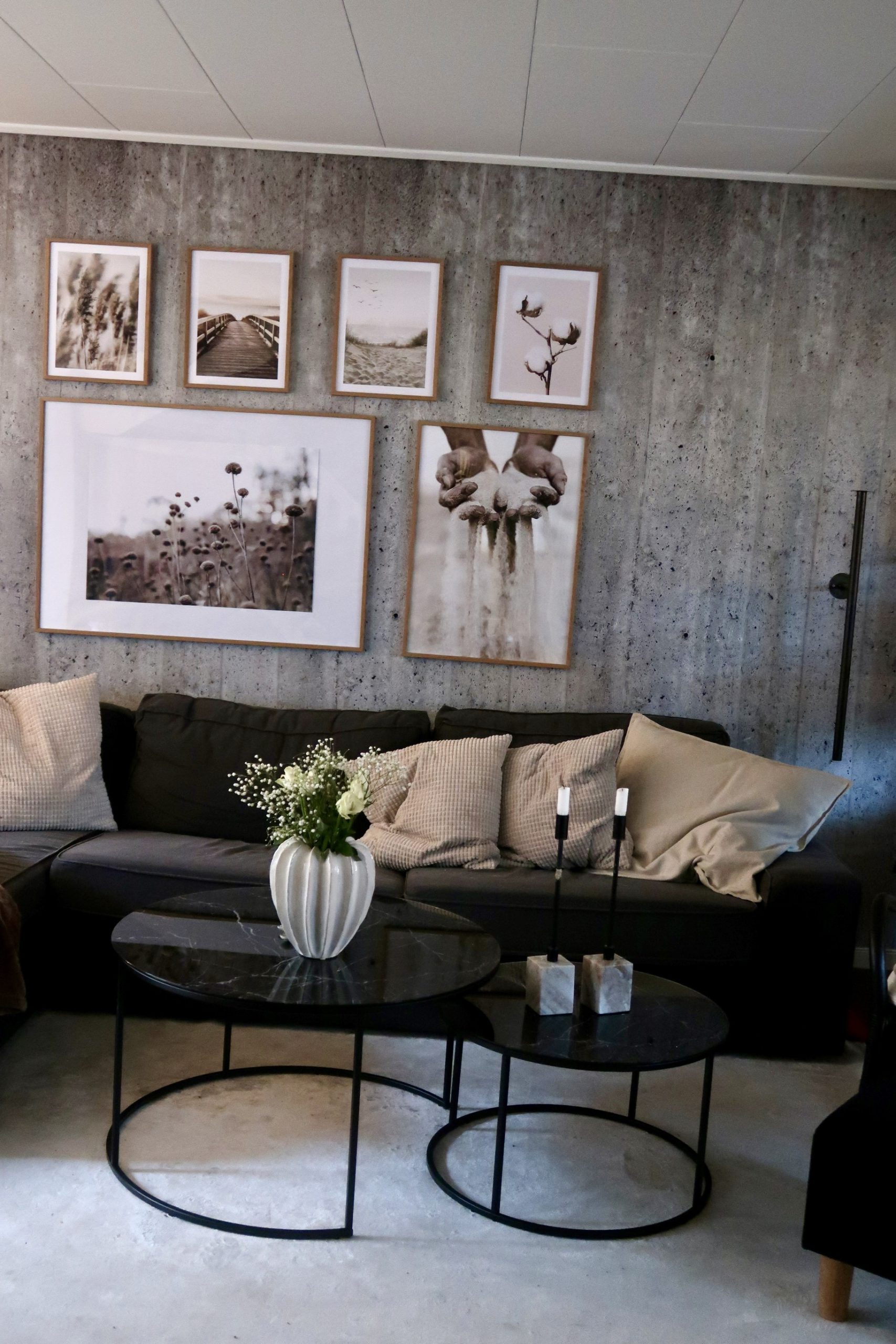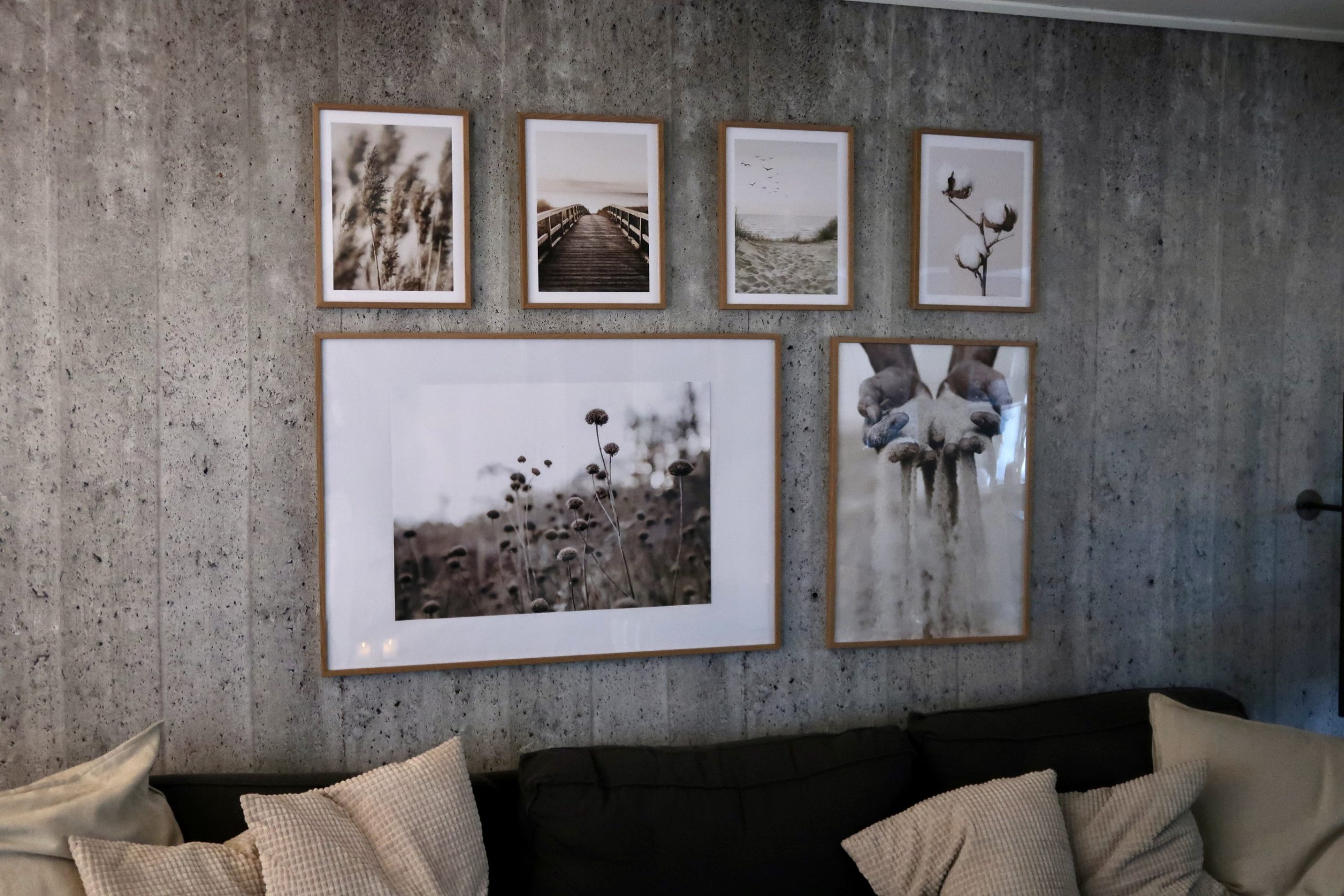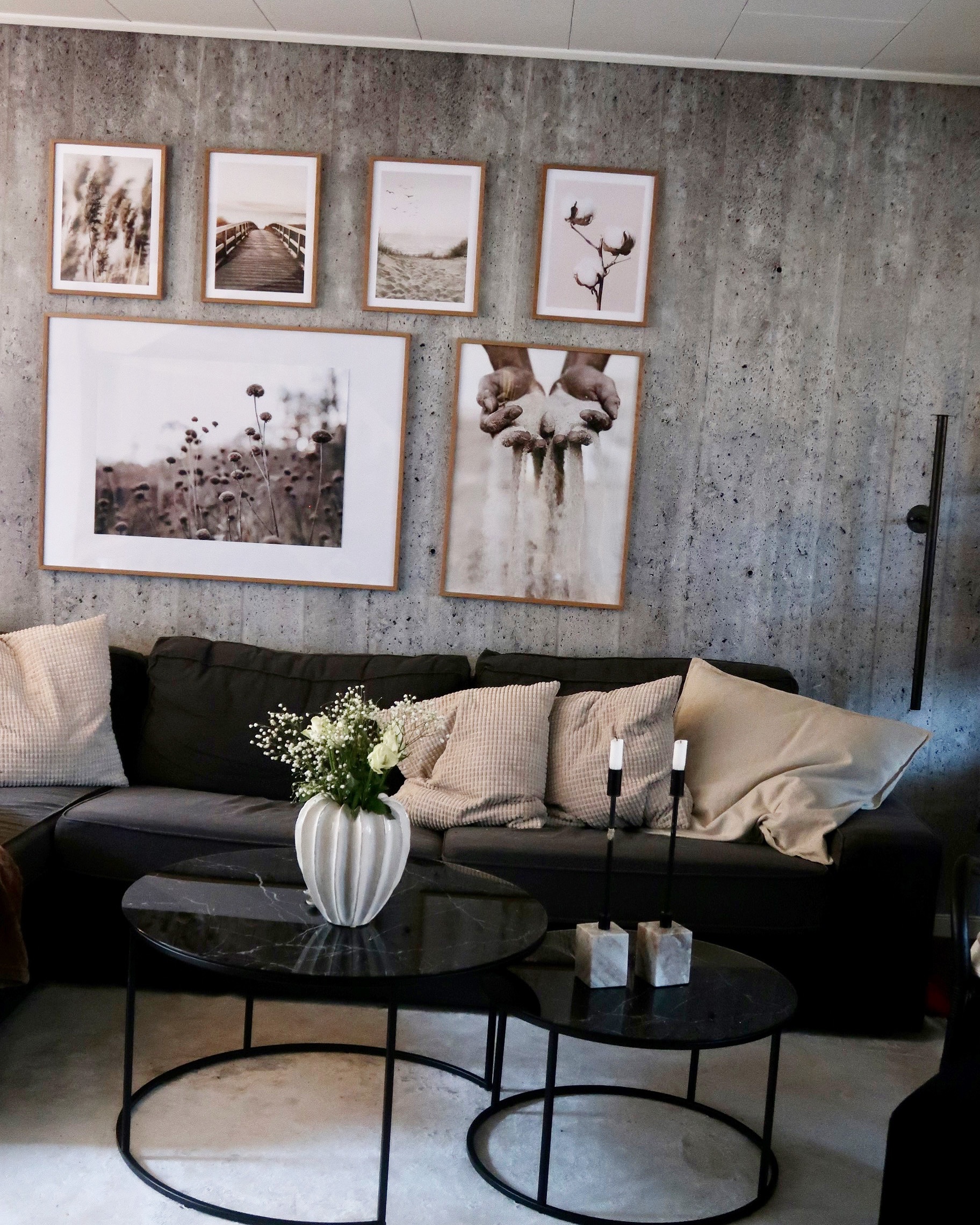 Nu är tavelväggen i vardagsrummet klart. Nu är det bara den vita/beiga soffan och nya vardagsrumsbordet som jag tänkt göra själv som fattas. Så spännande, bordet blir en utmaning men blir det så som jag hoppas kommer det bli succé! Haha…. Bordet kommer hämta upp vägg och träramarna på ett jättefint sätt. Åh, vill bara sätta igång med det nu.