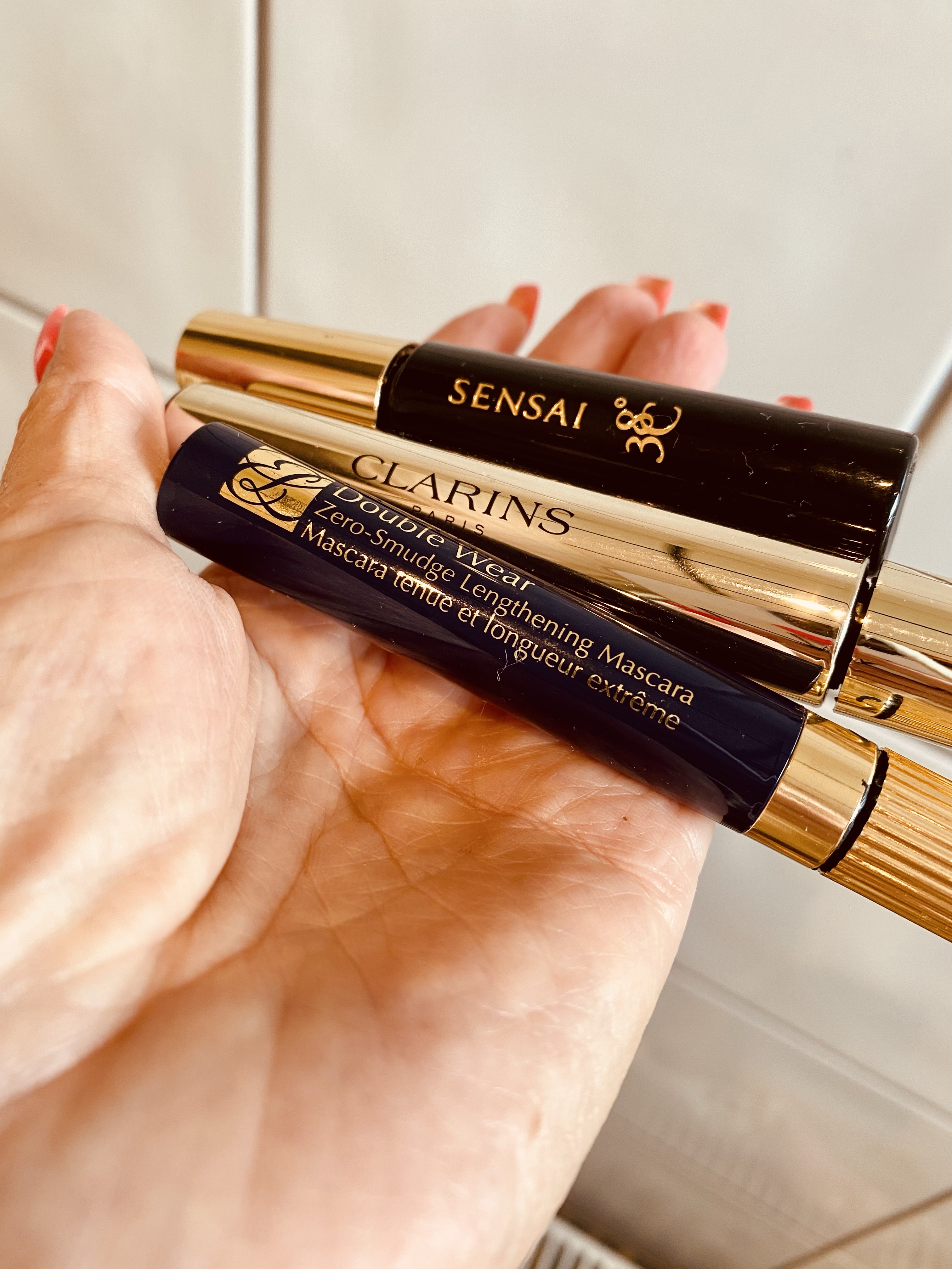 På överfransarna använder jag Clarins Volym mascara, bäst på att ge tryck till fransarna så de blir sådär ordentligt svarta och lite grövre. Älskar! Denna gillar jag dock bara att ha på de övre fransarna för på de undre tycker jag att det kladdar lite.