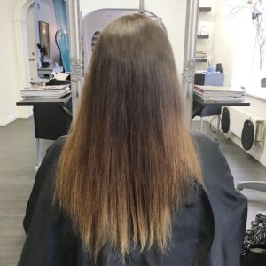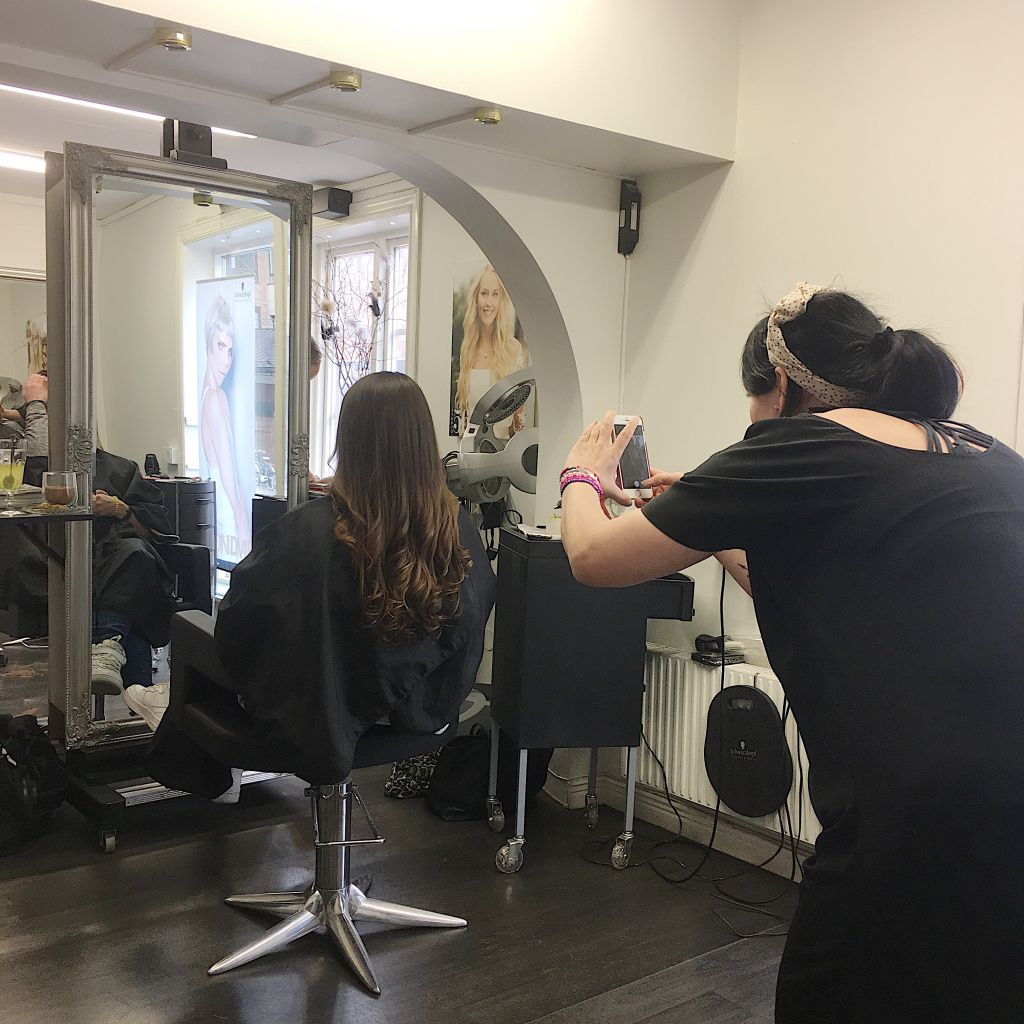 Ja såhär såg mitt hår ut när Jenny tog ur mina slingor. Slitet, helst på höger sida, alltid varit så för mig….märkligt! Jag hade inte många kvar och det var lite småtovigt på sina ställen. Snabbt jobbade hon loss dem och efter detta blev det en hårtvätt med massage. Det får man alltid där, så sjukt jäkla skönt!