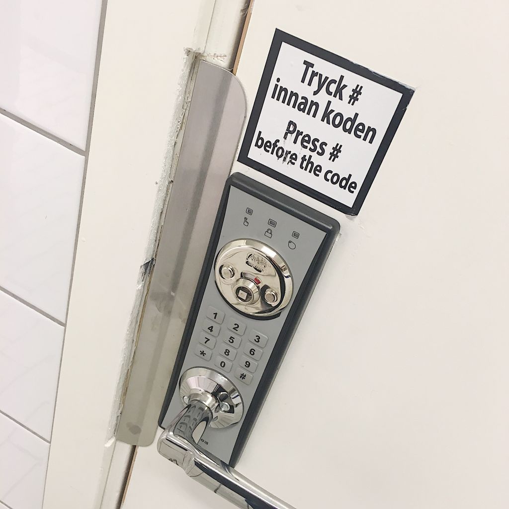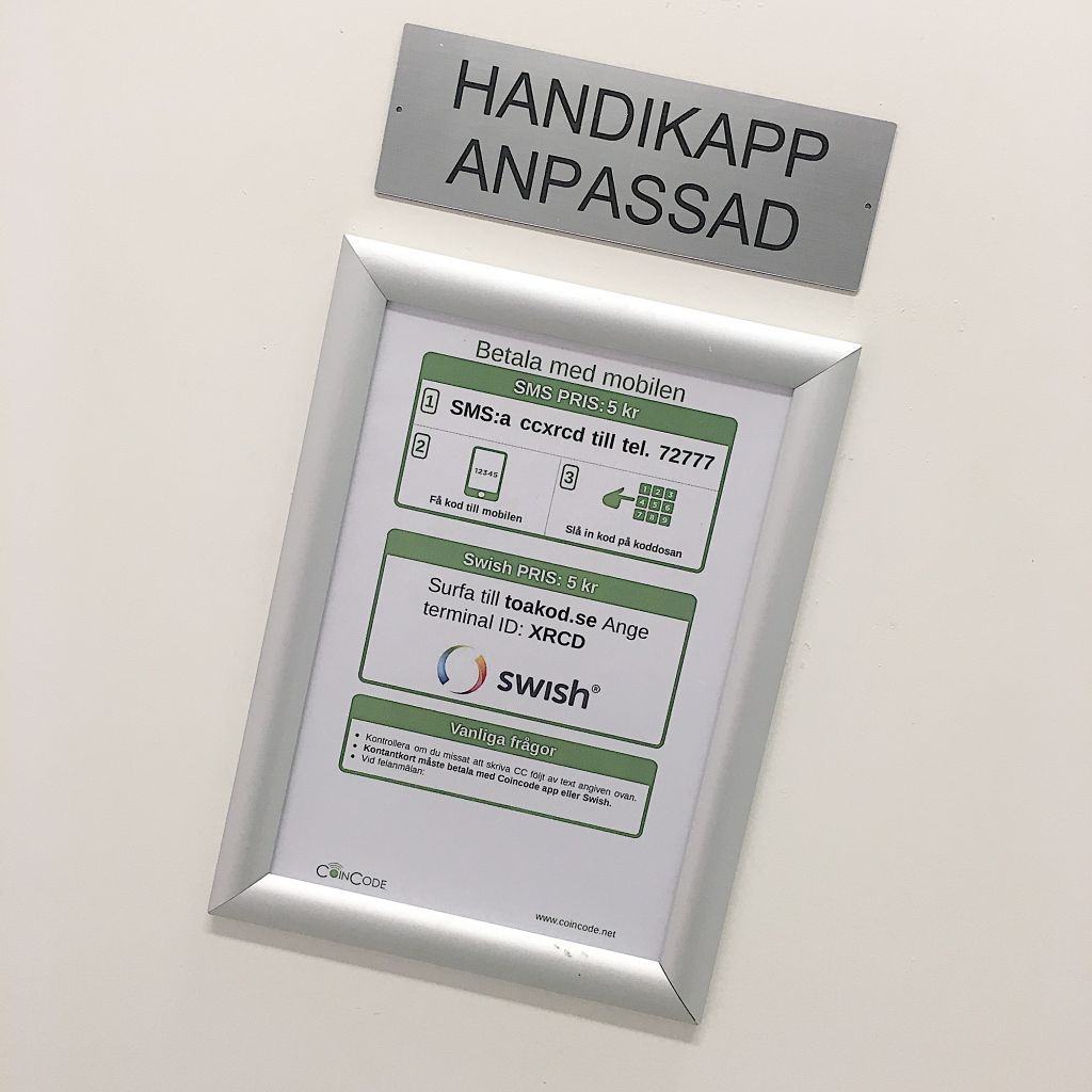 Men det här måste ju bara vara det bästa EVER! Alltså, har man ingen femma kan man antingen swischa eller sms:a en kod för att få en egen kod i gengäld som man kan gå in på. Såååå smart! Alla kan gå på toa, femma eller ej. Tur att jag gick och Milo gick först i alla fall, Tony såg chockad ut när jag öppnade….han höll nästan på att prutta på sig men kunde inte knacka på o säga det när det stod fler utanför och väntade. Haha….min humor. Sorry.