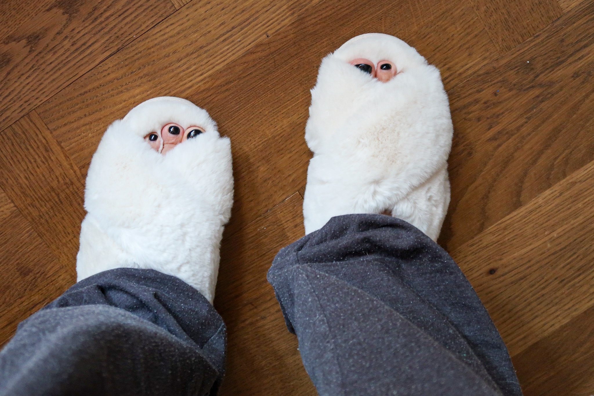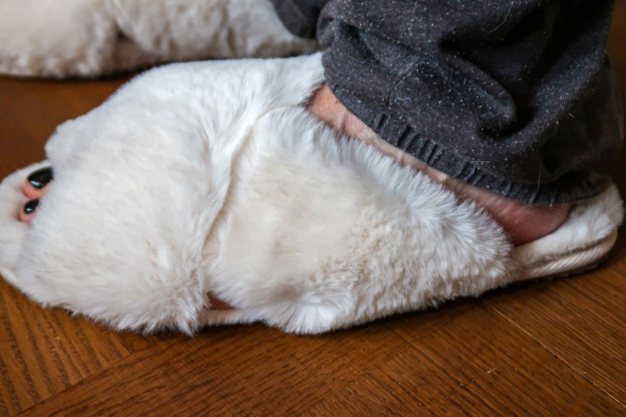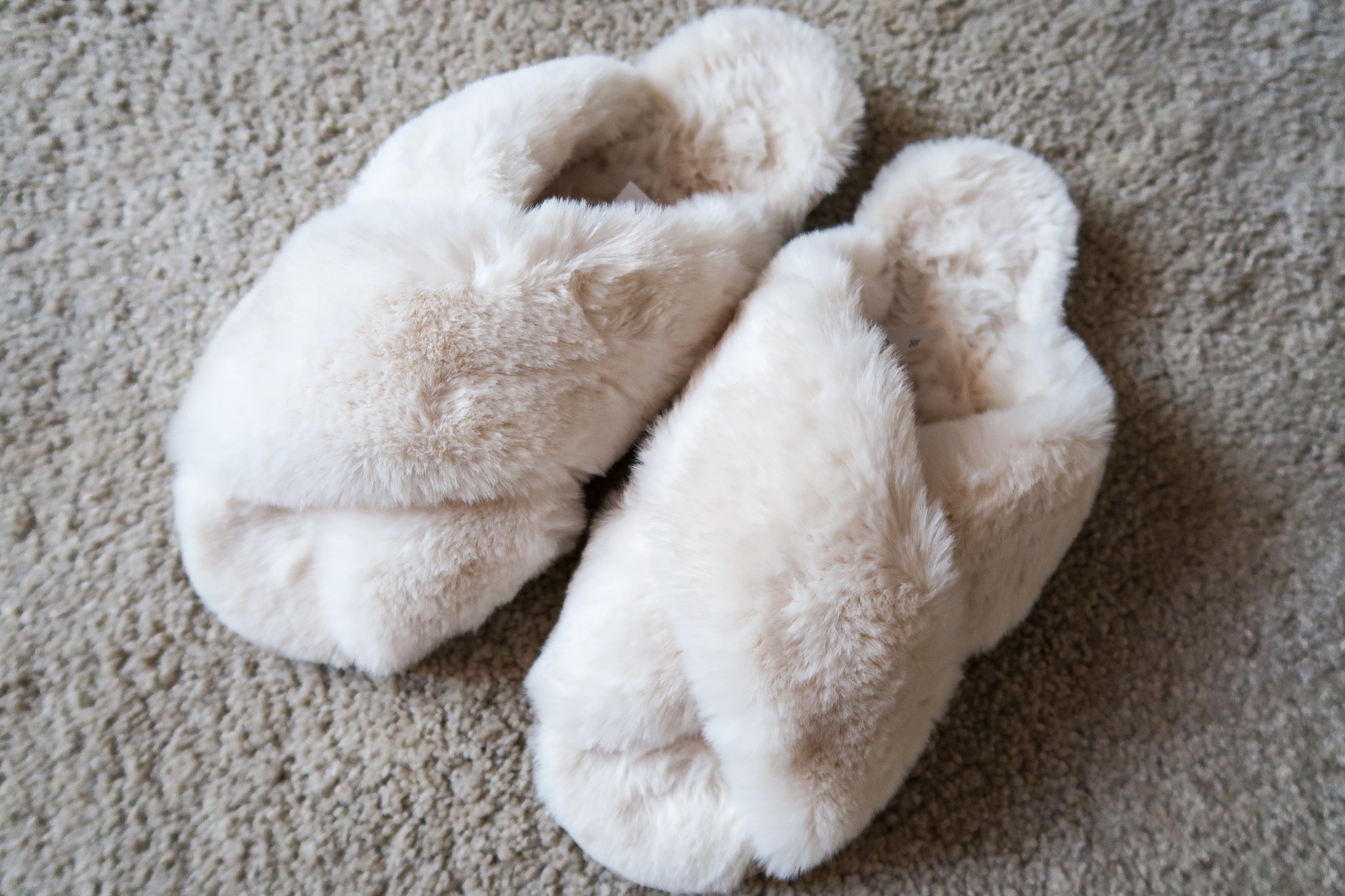 Sist men inte minst, dessa gaaaaalet härliga lurviga mjuka >>tofflor<<. Nej men hörni, jag kommer leva i dessa. De har en ordentlig sula också så man kan snabbt gå till brevlådan i dom också. Men huuuuur underbara? Älskar! Finns i rosa och svart också. Kanske ska beställa fler för dom var inte dyra.