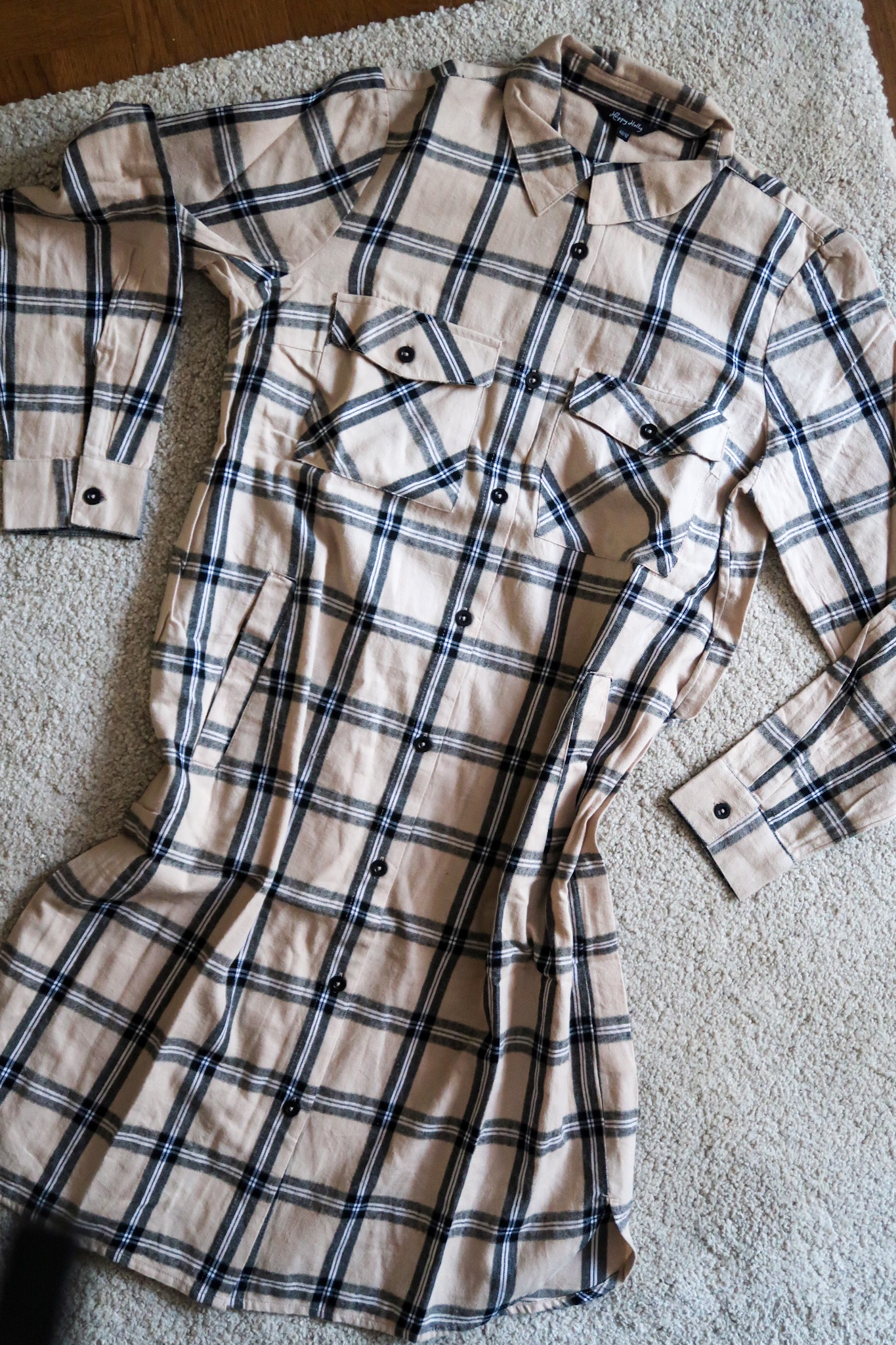 Världens härligaste >>långskjorta i mjukaste bomullsflanell.<< (REA just nu!) finns även i en fin grön färg. Älskar att den har fickor i fram. Den här ska jag matcha med strumpbyxor och kängor, eller med tighta jeans med ett skärp i midjan. Snyggt bara till ett par tights också. Såååå fiiin!