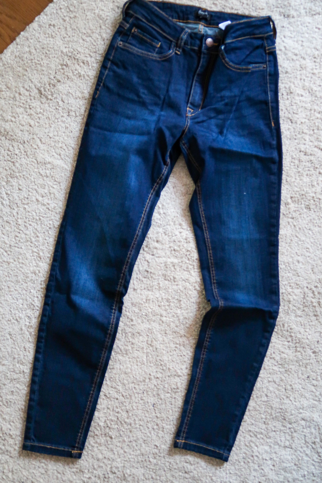 Apropå jeans, vet inte hur många par jag har av dessa >>jeans<<. Haha, har säkert 5 eller 6 par. Bara tokälskar dom. Brukar ALDRIG vara REA på dom men nu jäklar är det just det. Dom är superstretchiga och sitter sååå skönt på. Inte överdrivet höga i midjan utan sådär perfekt, trollar in magen i jeansen liksom. Detta är dom som heter mörk denim.