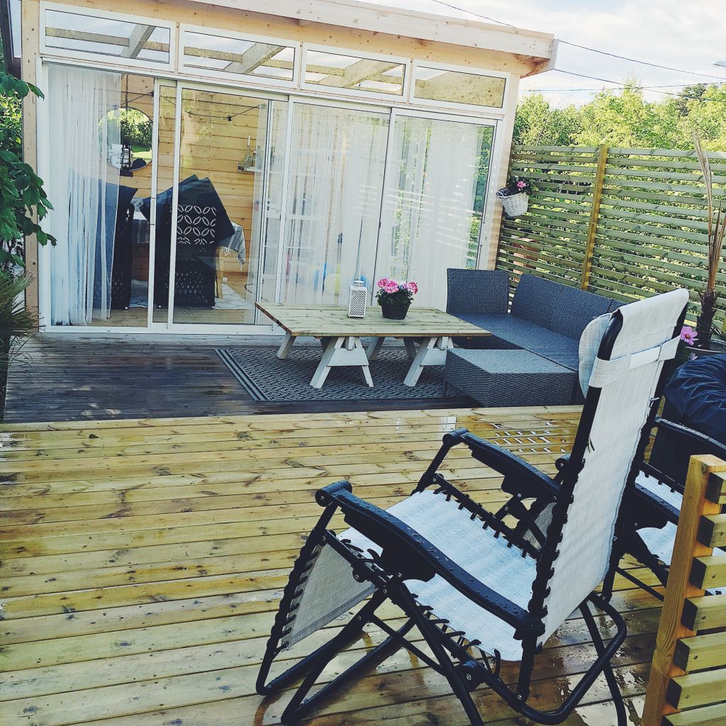 Vi har nyss haft ett skyfall här men du kan se lite av hur det ser ut nu på vår uteplats och uterum.
