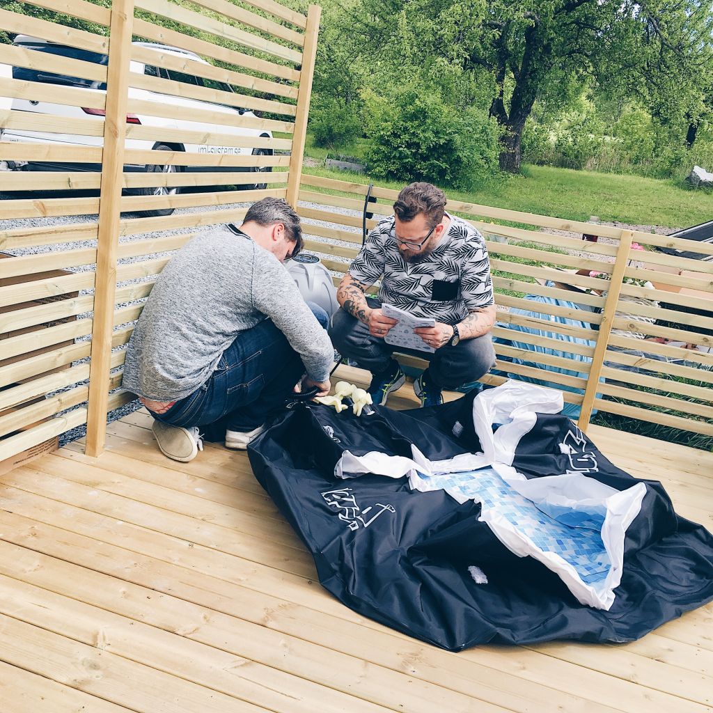 Exet var här efter att ha hjälpt till med röjning av student så han fick hjälpa till med poolen också. Instruktioner som skulle läsas och luft som skulle fyllas….