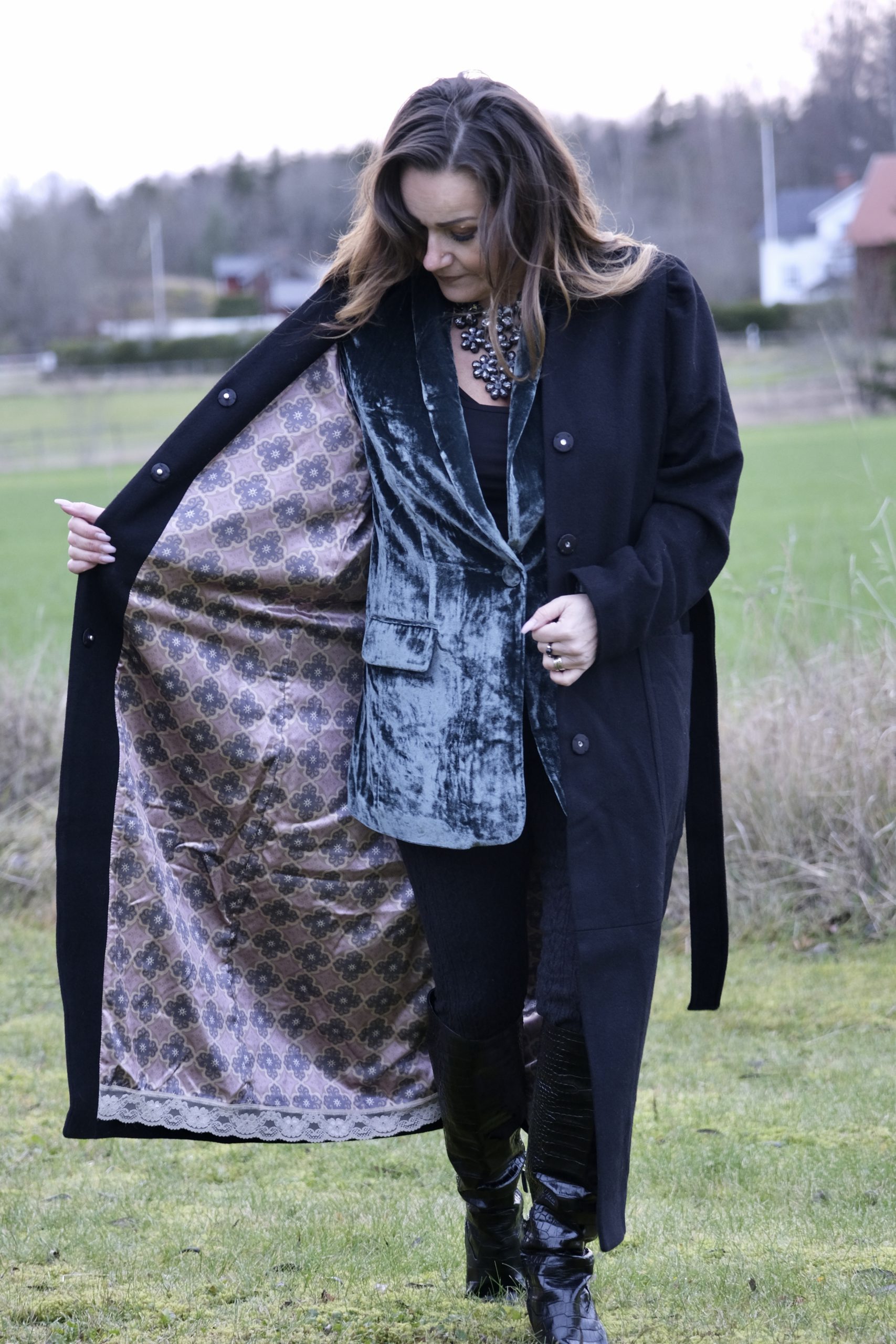 Den galet snygga kavajen under kappan är den >>HÄR<< (Allison Jacket). Nyårsoutfiten, jobbkavajen för fredagar, festkavaj, kavaj att använda som ”jacka” i vår med en stor scarf. Nej men den är så snygg så jag vet inte vad. Den här kommer användas frenetiskt! Till kavajen har jag de skönaste leggingsen jag haft, en liten söt resår i midjan och så mjuka och sköna. Känns också varma. Kenzie leggings >>HÄR<< (klickbar länk).