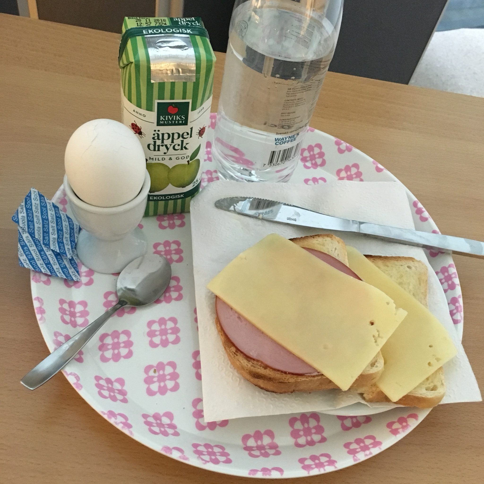 I morse njöt jag så av den här tallriken med fil, flingor och lite pannkakssylt. Haha….tills sköterskan kom in med den här tallriken istället.