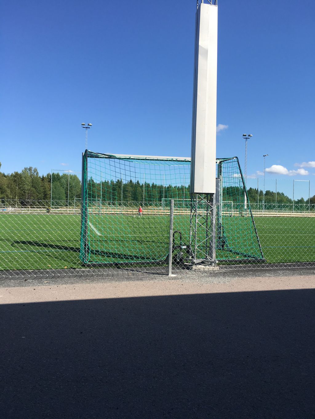 Efter stan så drog Thedde till jobbet och vi upp till fotbollsplanen. Milo fick stå och mosa lite skott igen. Jag lekte bollkalle.