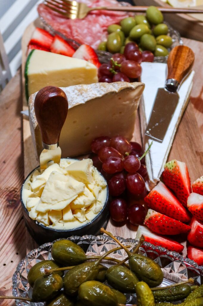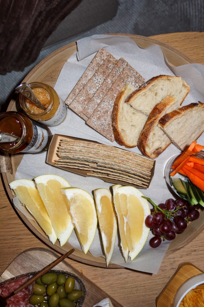 Annat gott jag gillar på ostbrickan: VINDRUVOR, GREKISKA OLIVER, JORDGUBBAR, JÄTTEKAPRIS, CORNICHONS, POMELO, GURK & MOROTSSTAVAR, TRYFFELSALAMI, KEX & BRÖD.