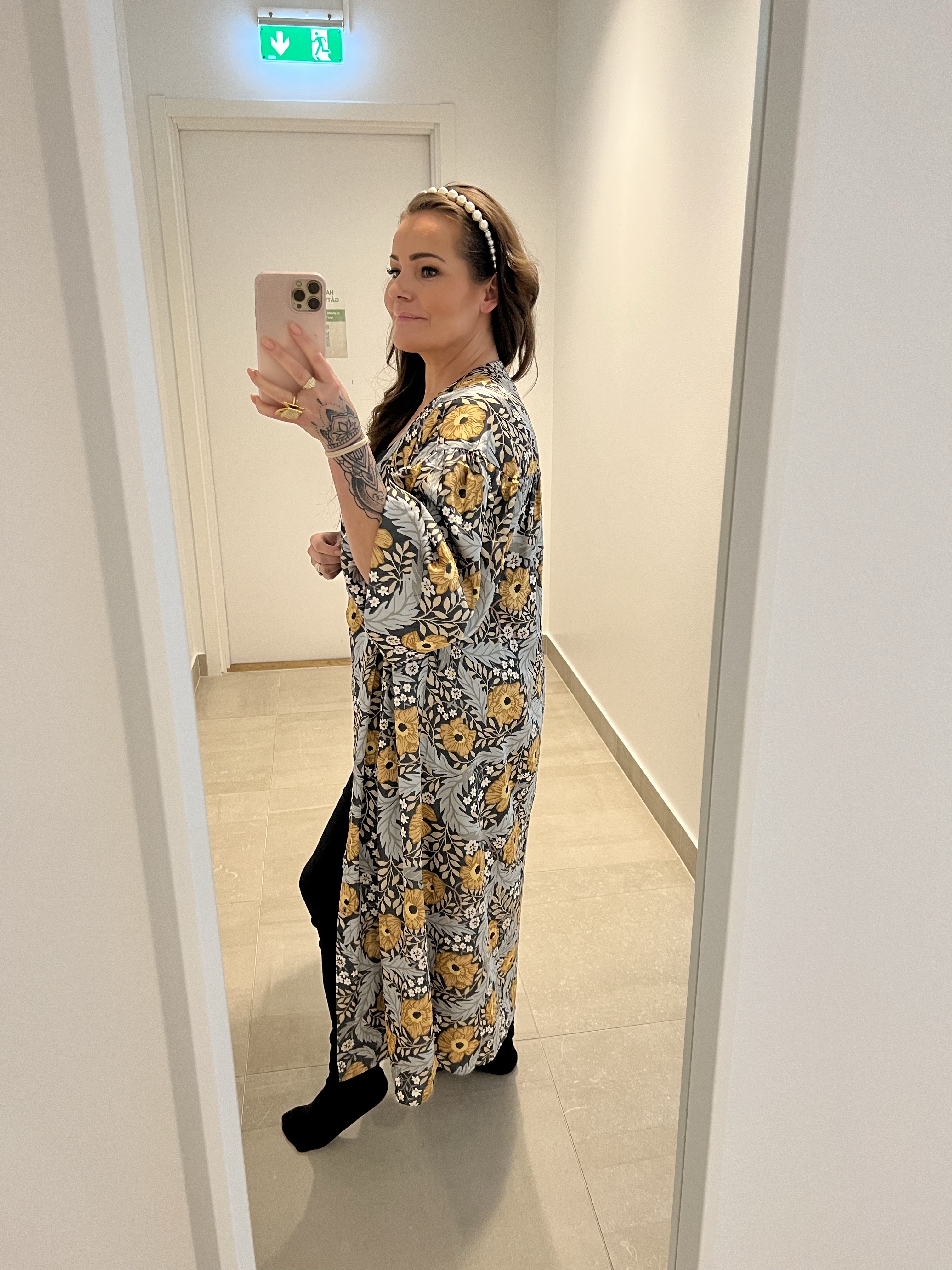 Igår var jag till Osteopaten, lyckades fota av min outfit innan jag gick in till honom. Det här är egentligen ett nattplagg men pratade med tjejen i kassan om den att jag skulle ha den som kaftan. Då sa hon att så många använder deras nattplagg till vardags. Skönt att man inte är ensam kanske? Så härligt tungt material är det på den.