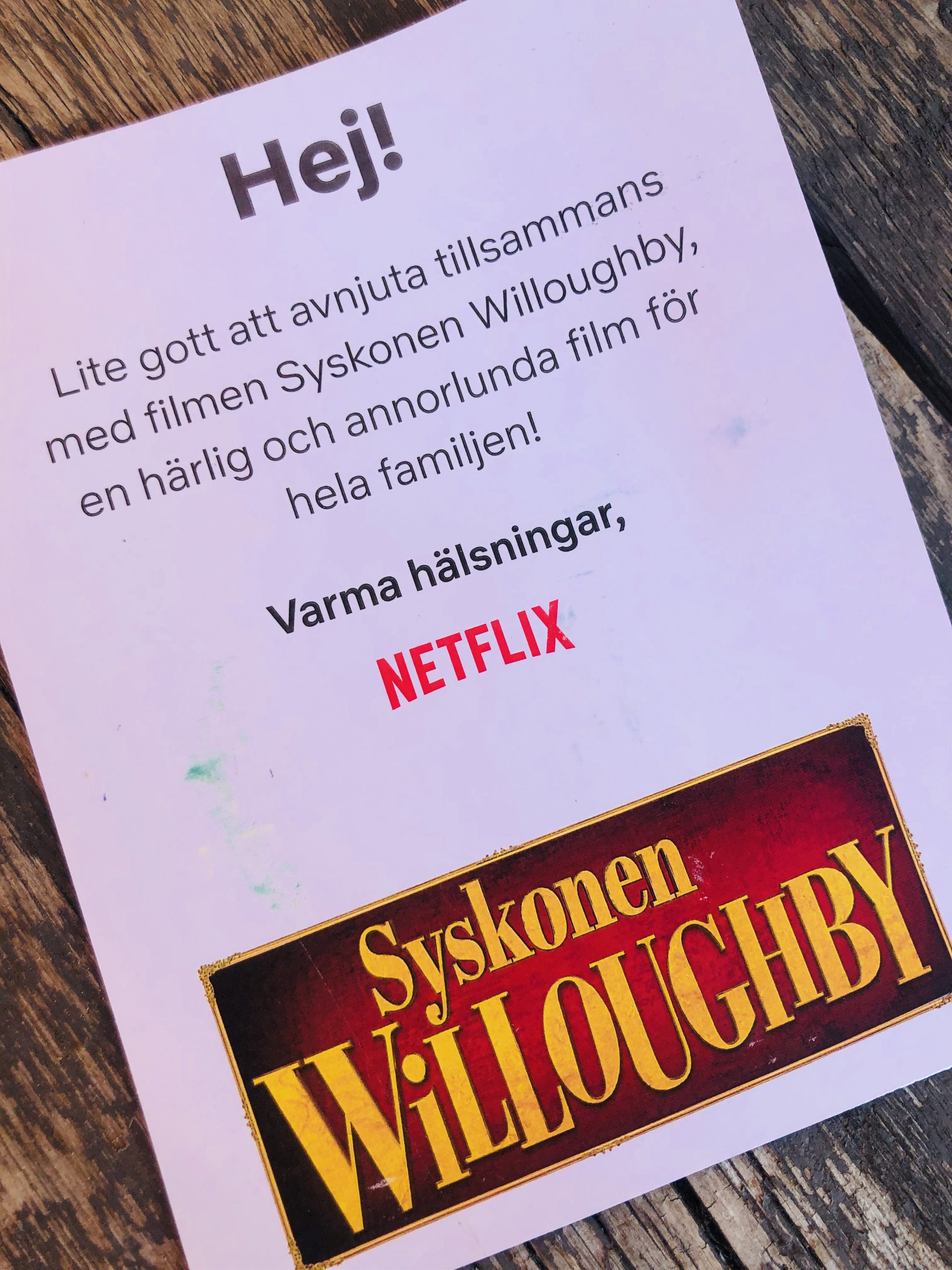 Han hade i alla fall veckans härligaste överraskning med sig. Nu när man inte kan gå på biopremiär så kom premiären hem till oss istället. Imorgon skulle tydligen Syskonen Willoughby släppas på Netflix. Den verkar himla bra! Filmtips om ni vill titta på film tillsammans med era kids.