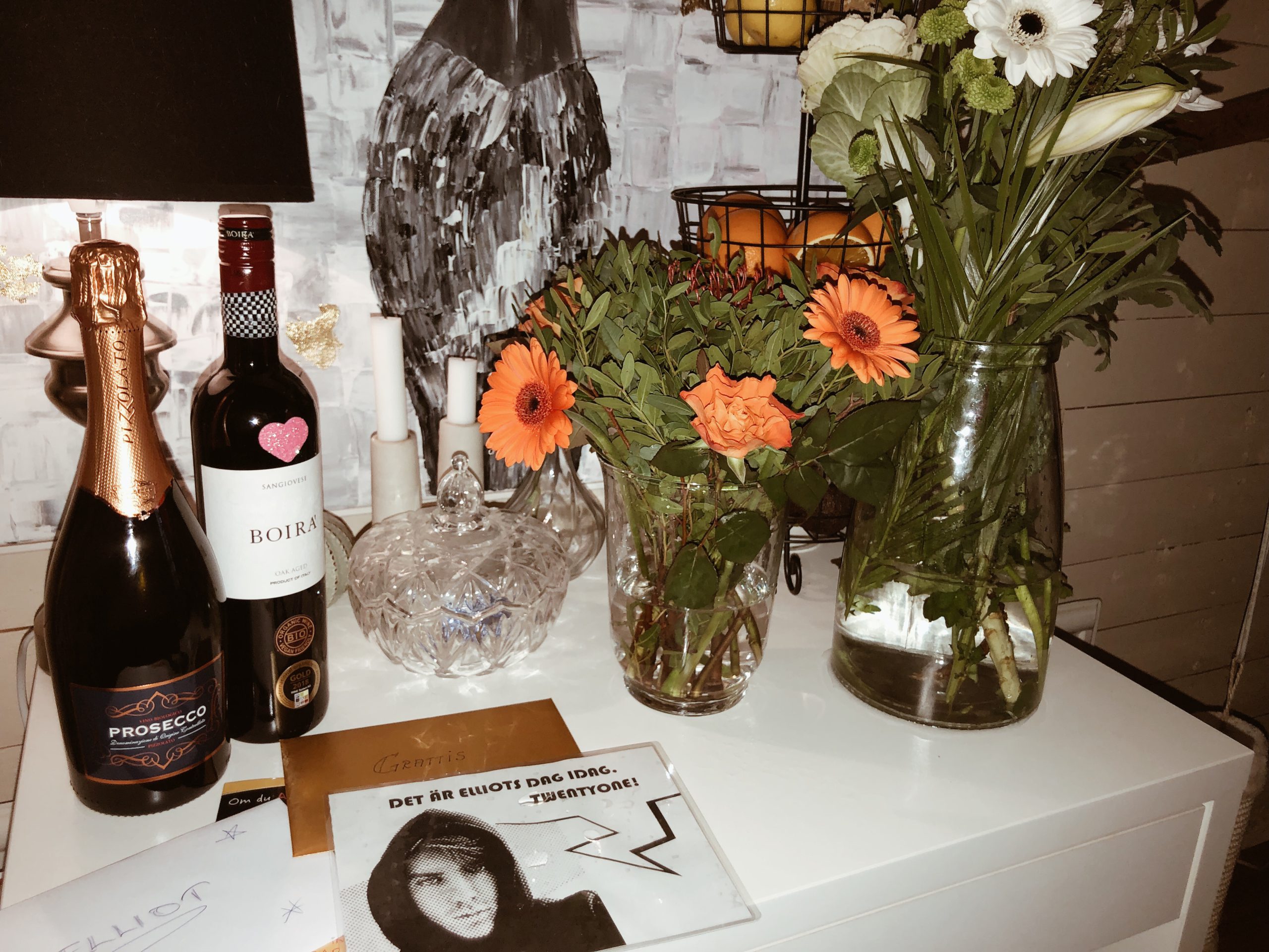 Hörni, hoppas allt är bra med er. Igår blev en väldigt hektisk dag, så är det när man är två tidsoptimister i en och samma familj. Vi hann i alla fall precis klart när gästerna anlände vid kl 18 för att fira Elliots 21 årsdag.