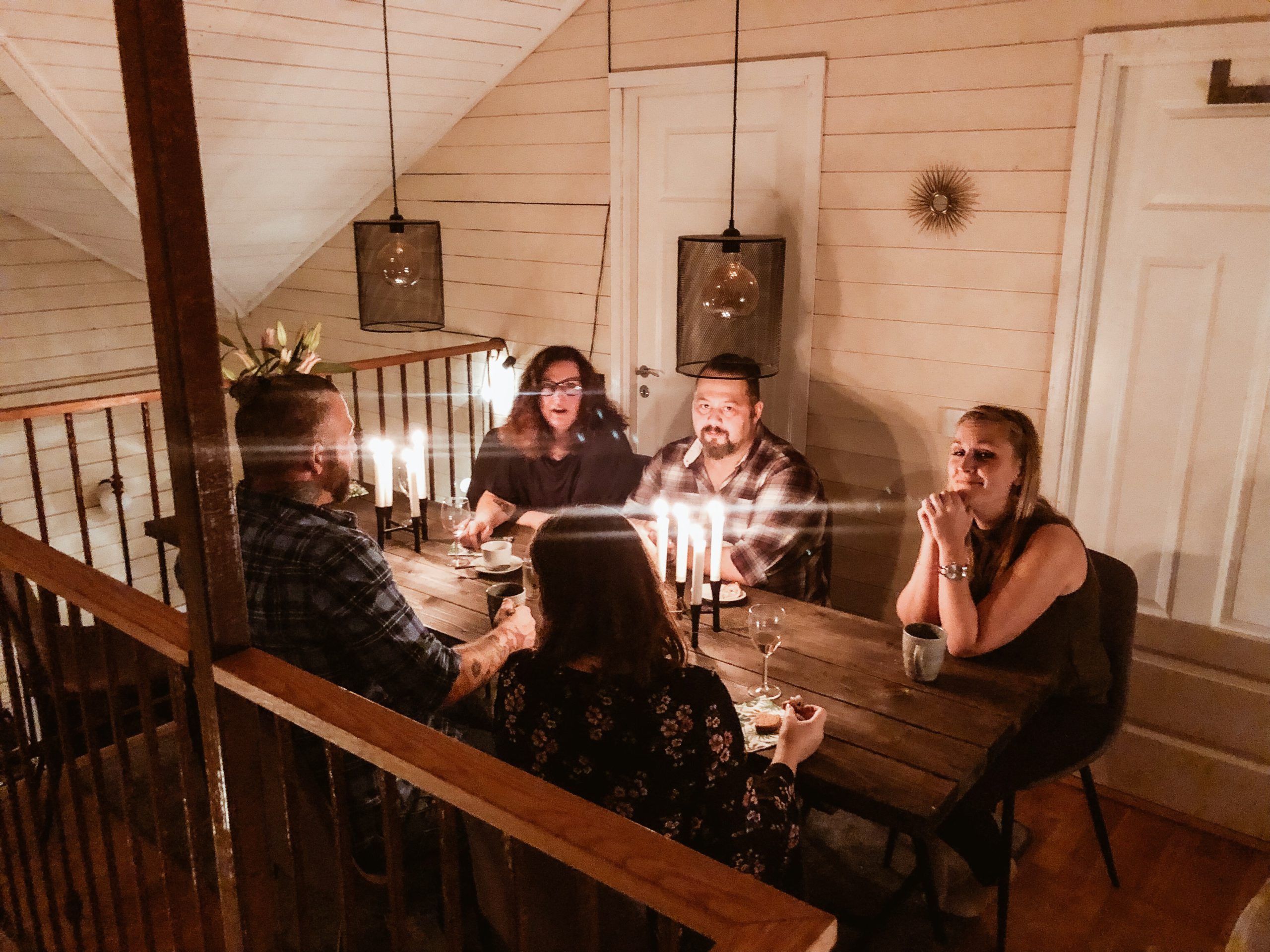 Ja familjerna brukar inte sitta såhär åtskilda….. hahaha. Ser nästan så ut ju. Konstellationen såg nog ut såhär just när bilderna togs bara, vi sitter i en salig blandning annars.