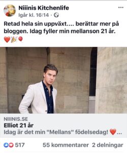 På min >>Facebooksida<< har vi fått så galet mycket kärlek alltså, ja sen jag berättade lite om hans uppväxt igår. Jag är alldeles överväldigad så fina ni människor är alltså?! Tack! ❤️❤️❤️ Ska be Elliot gå in där och titta idag när han vaknar, han kommer bli minst lika överväldigad som jag.