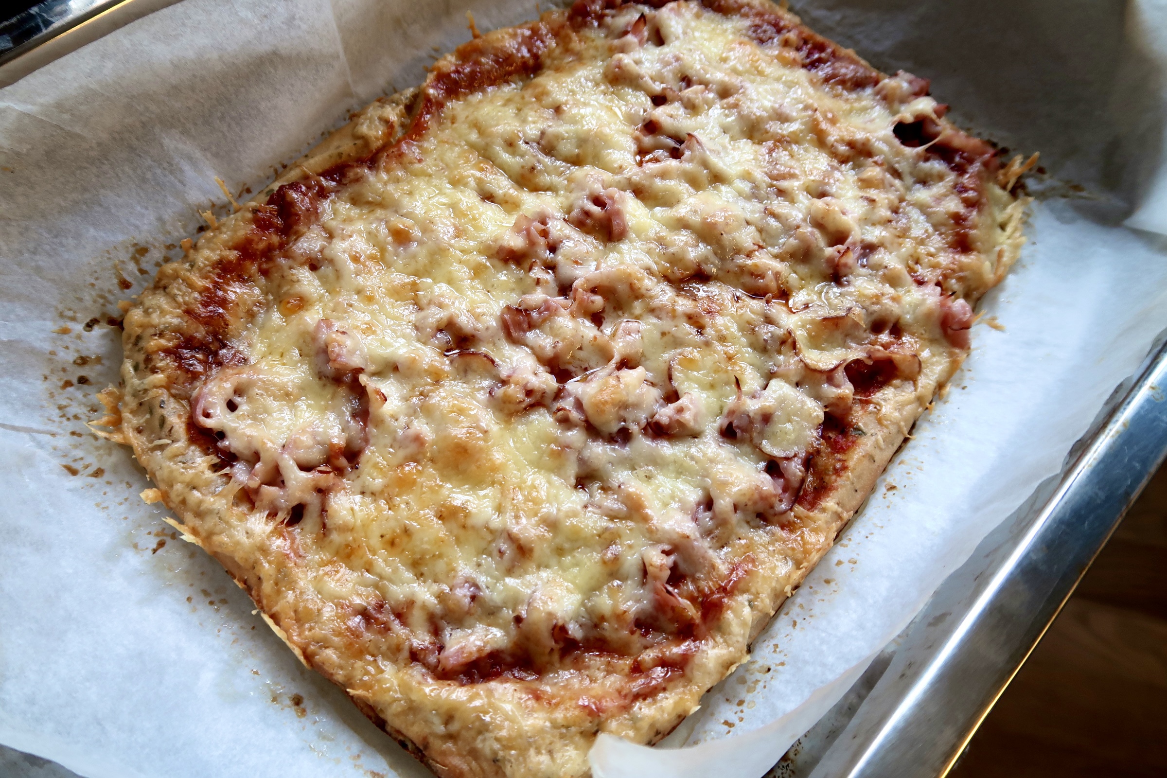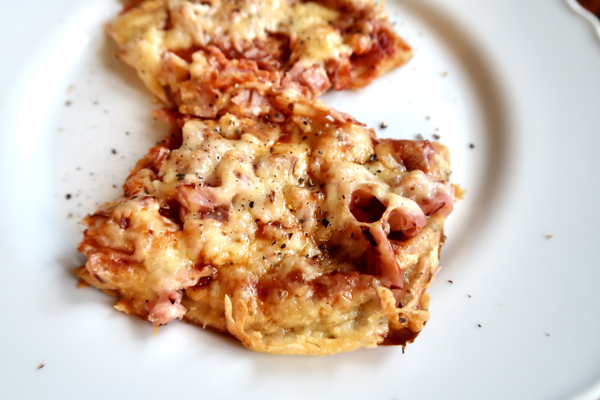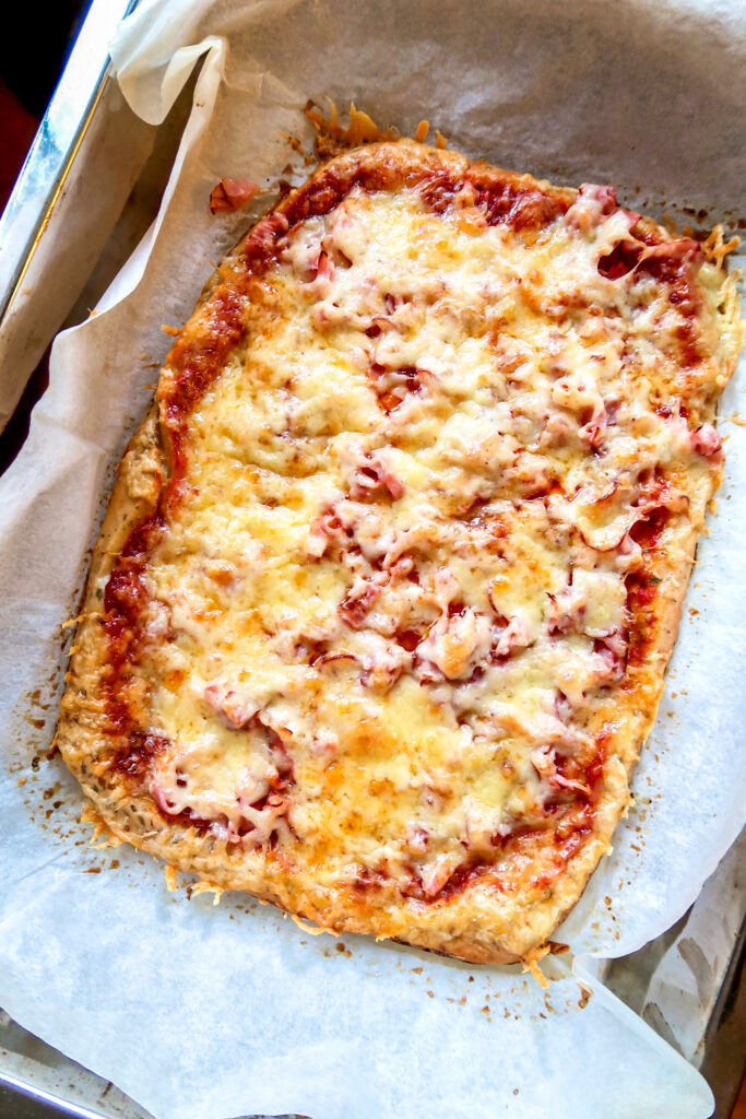 Variera toppingen som du vill. Här körde jag en väldigt traditionell med ost & skinka. Jag tänker att det är gott som en vegetarisk också, eller kanske tacoköttfärs med fetaost. Mums! Du kan variera så mycket du vill.