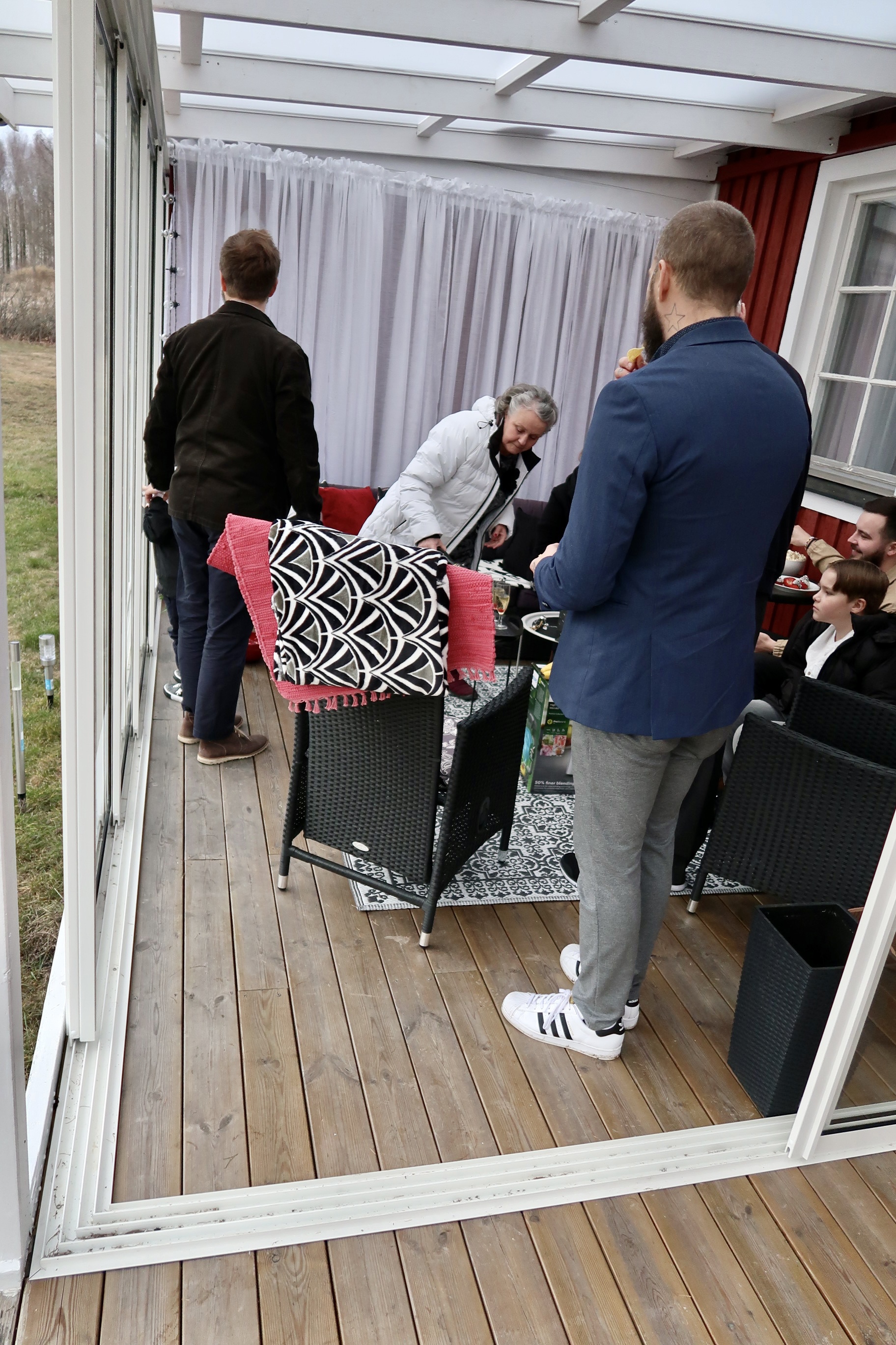 Vi samlades i mamma o pappas uterum för att ta ett glas alkoholfritt bubbel. Mamma hade fixat chokladdoppade jordgubbar och snacks till. Så gott! Pappa öppnade sina presenter och så fick vi sjunga för honom.