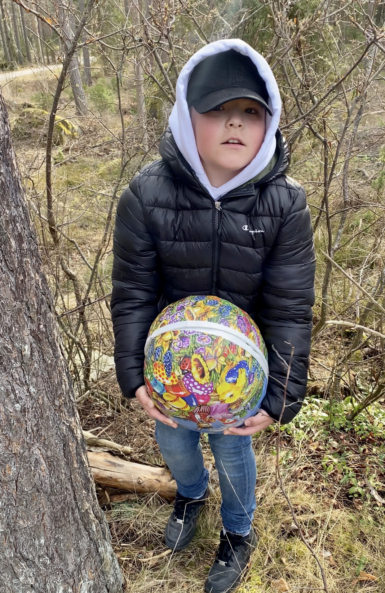 Han var så nöjd efter sitt letande och innehållet i sitt påskägg. Sen ville han handla för sin slant direkt, han har sparat till en ny basketboll så då fick vi köpa den. Blev en bra påskafton på alla sätt.