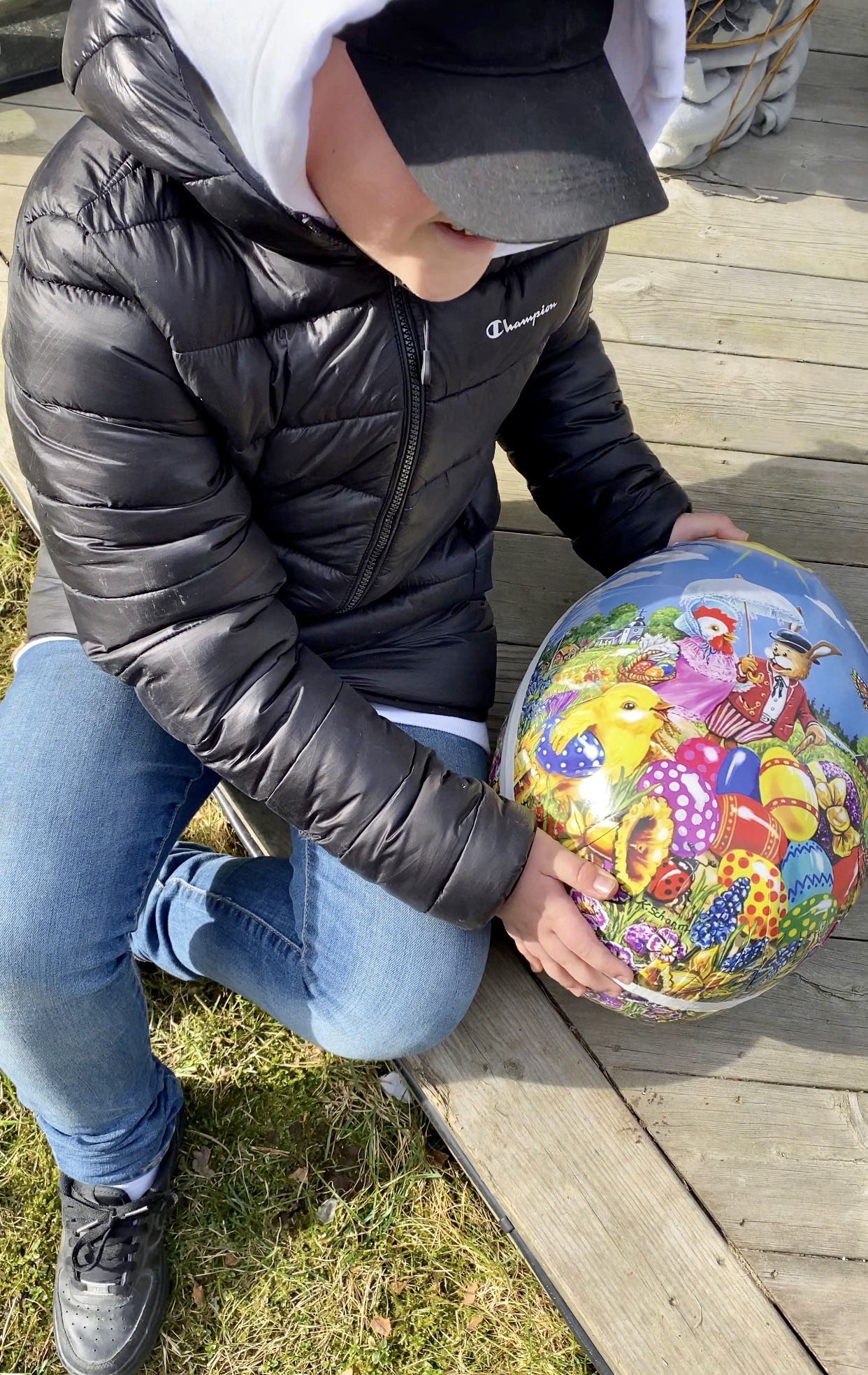 Favoritsnacks, favoritgodis, en slant och massa dricka fick plats i det. Ett tips är att spara påskäggen, det gör vi. Ett sånt här stort ägg kostar ju liksom 200 kr att köpa. Jätteonödigt att köpa nytt varje år ju.