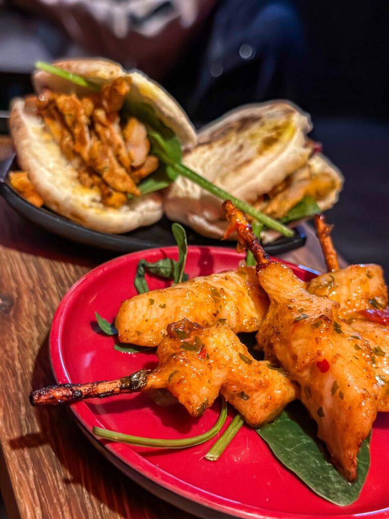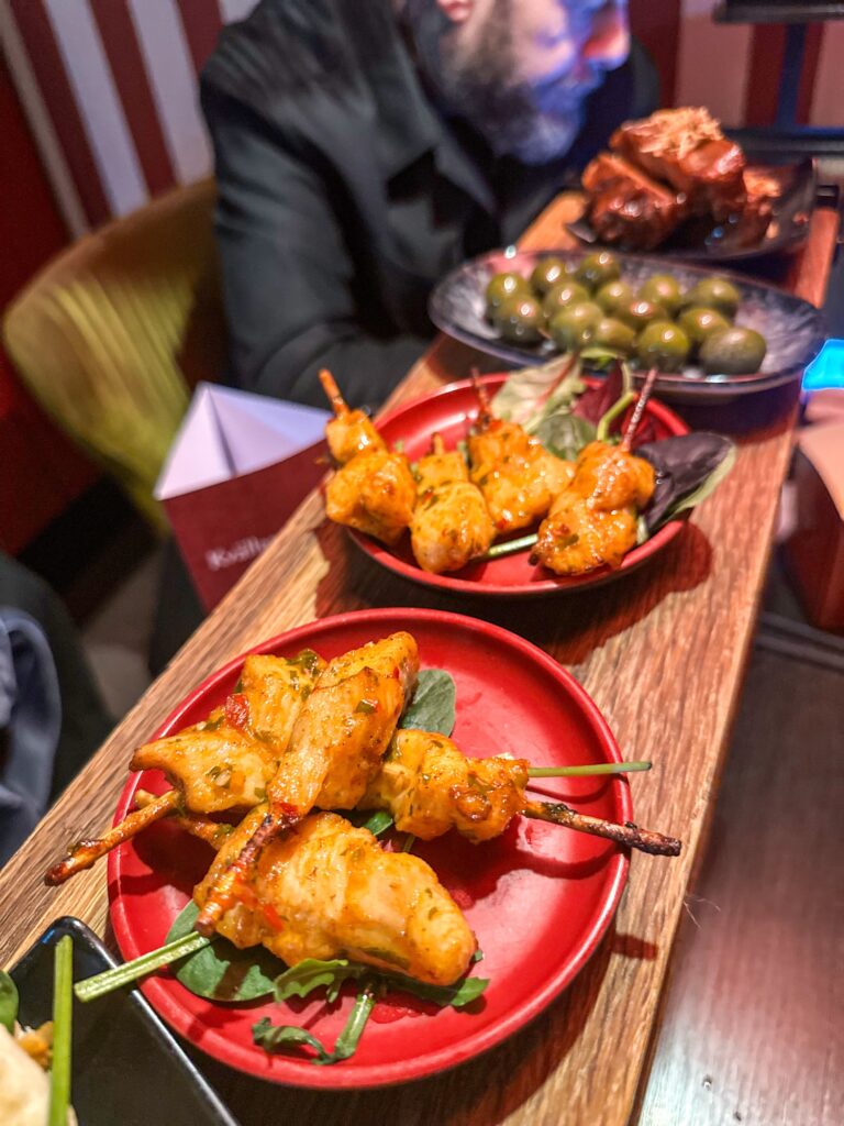 Jag åt edamamebönor (inte så bra för min mage men jisses så gott detta är – får vara värt det ibland), cheesy corn ribs, nocellara oliver (så goda) och kycklingspett. Det var sent för mig detta så jag var inte så hungrig, ändå ”dammade” jag allt som Milo skulle sagt.