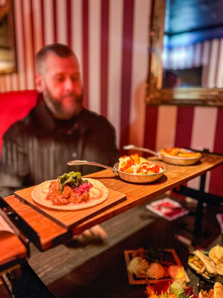 Förut hade dom en form av hård majstortilla med en räkcheviche på, men den hade tyvärr försvunnit. Den var min favorit! Det som finns i räkväg nu var spicy shrimp, heta räkor i chili- & vitlöksolja som serveras med vitlöksbröd, sen fanns också crispy torpedo shrimps.
