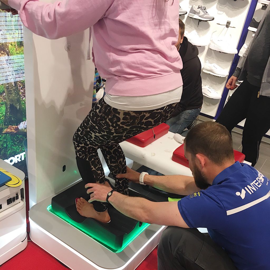 Han förklarade allt runtomkring och vad som kan vara viktigt att tänka på. Som stöd, svikt, dämpning osv. Här på bilden sitter jag och ska just få formgjutna sulor. Han berättade om en kvinna som haft så mycket problem med nacken men som fick bort det helt med formgjutna sulor. En annan hade stora bekymmer med benhinneinflammation, försvann på en vecka med sulorna. Jag har problem med knän, ryggen, nacke och axlar. Knäna trodde han helt klart berodde på skorna. Så det blev formgjutna sulor och ordentliga löparskor som ska ge bästa stödet för att stå hela dagarna. Sen funkar dom fint att promenera och jogga med också.