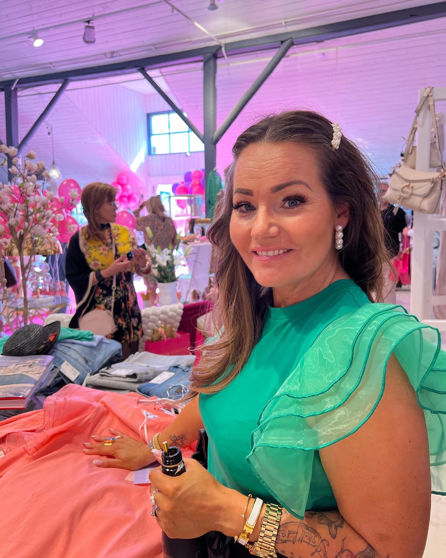 Vi var inbjudna av Erwik Communication. Blev en mysig timma i butiken, och som jag skrev en hel hög med sommarkläder. Ni ser färgen i bakgrunden, blev många plagg i den färgen. Älskar den färgen på sommaren, så snyggt på lite brunbränd hud.