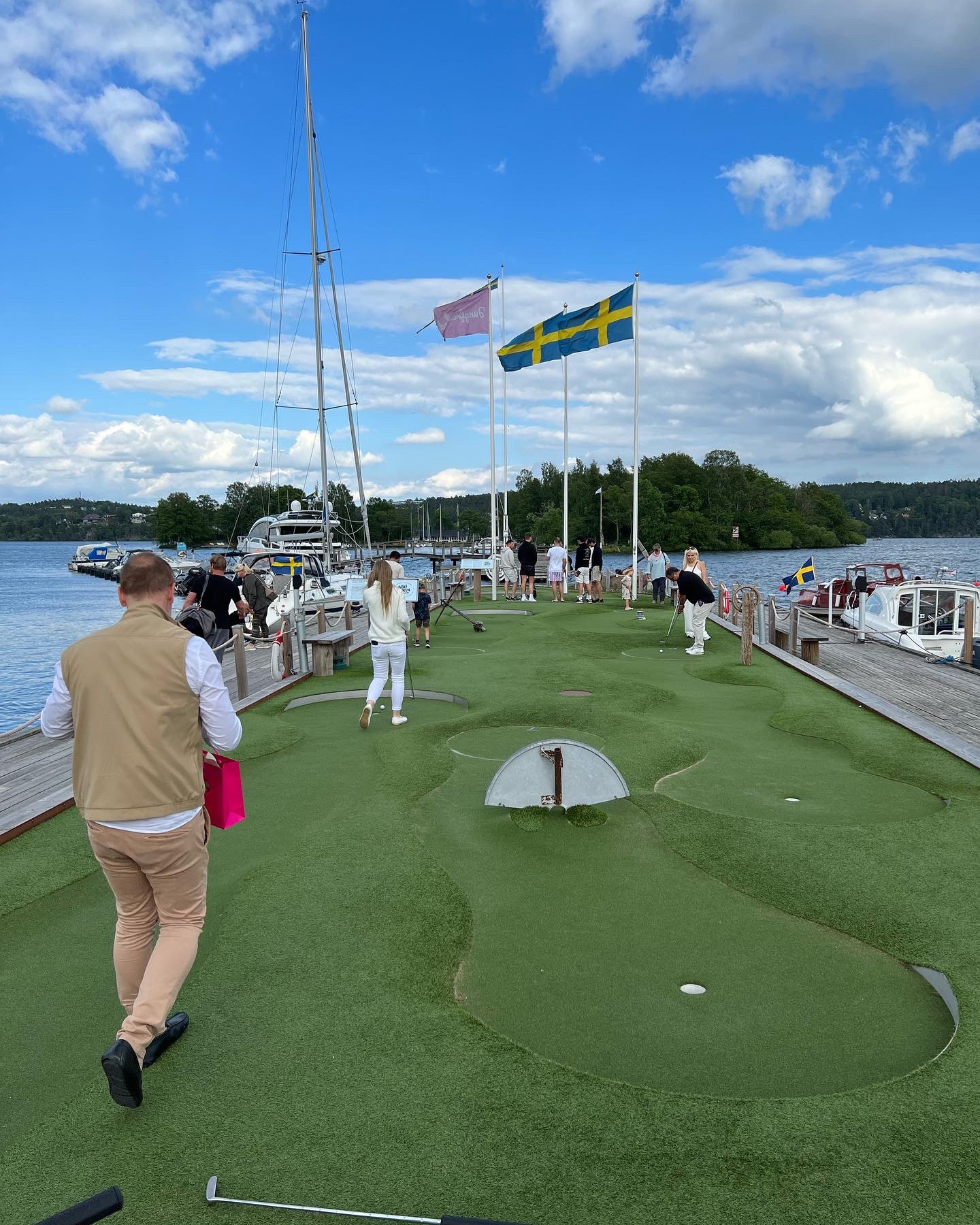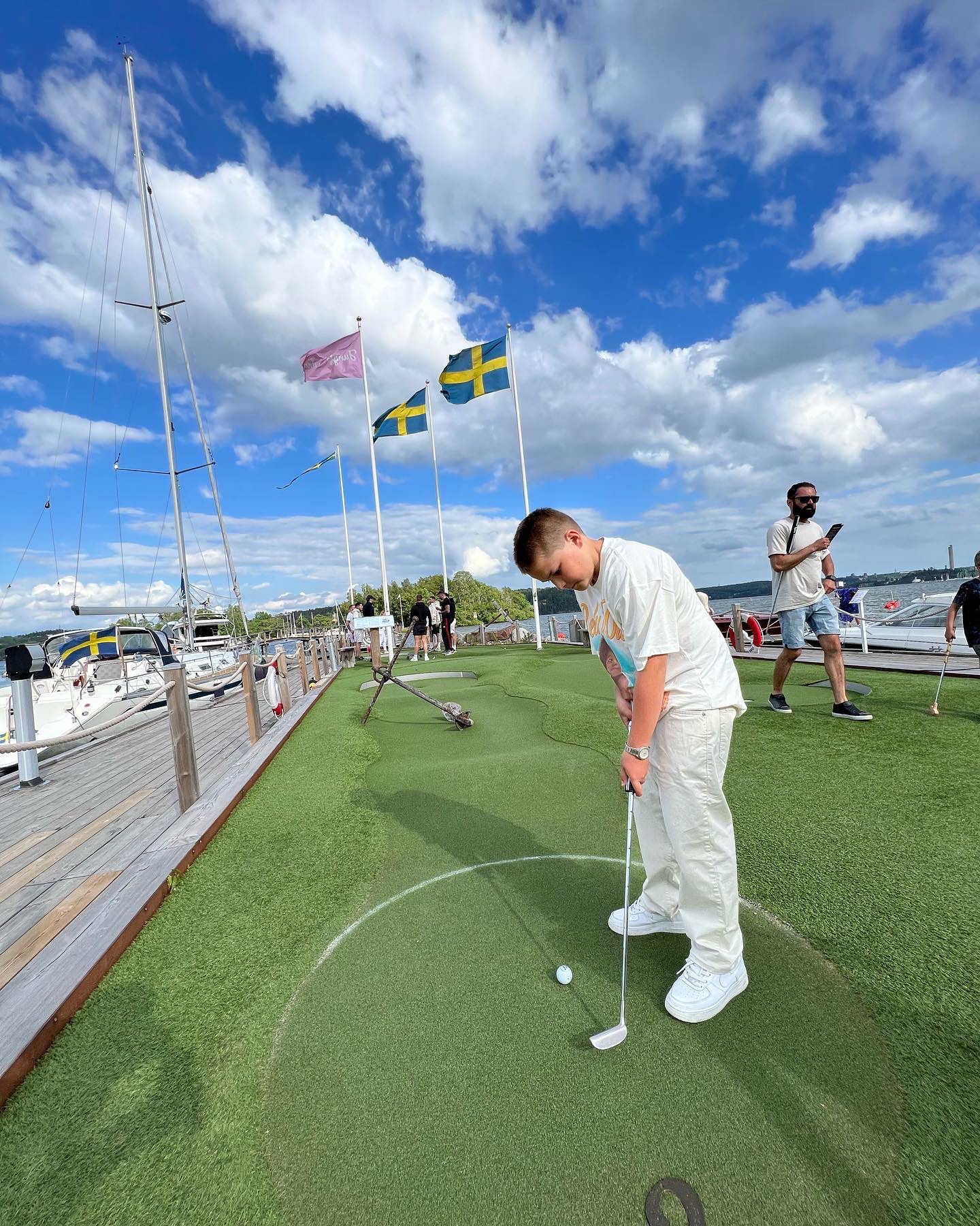 Efter shoppingen gav vi oss ned till golfbanan och golfbaren. Spelade minigolf på en superfin bana som ligger precis vid vattnet. Jag förlorade med en enda poäng mot Tony, gaaaaah….vinnarskallen i mig skriker nästan rakt ut. 🤣